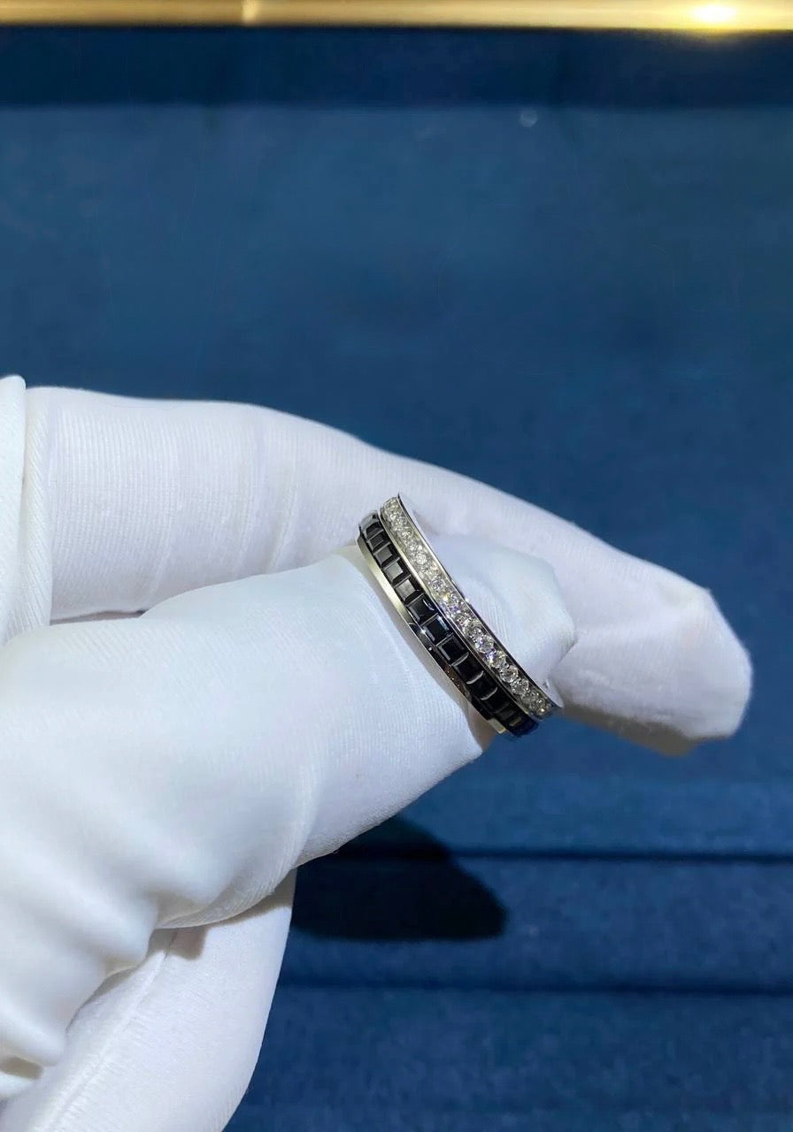 This collection perfectly embodies the brand’s spirit, showcasing exquisite craftsmanship and a sophisticated interplay of textures and gold. The Black Edition features 18k white gold accented with black PVD and is set with 33 round-cut diamonds totaling 0.25 ct. A striking piece, it adds a luxurious touch of classic elegance to any look.