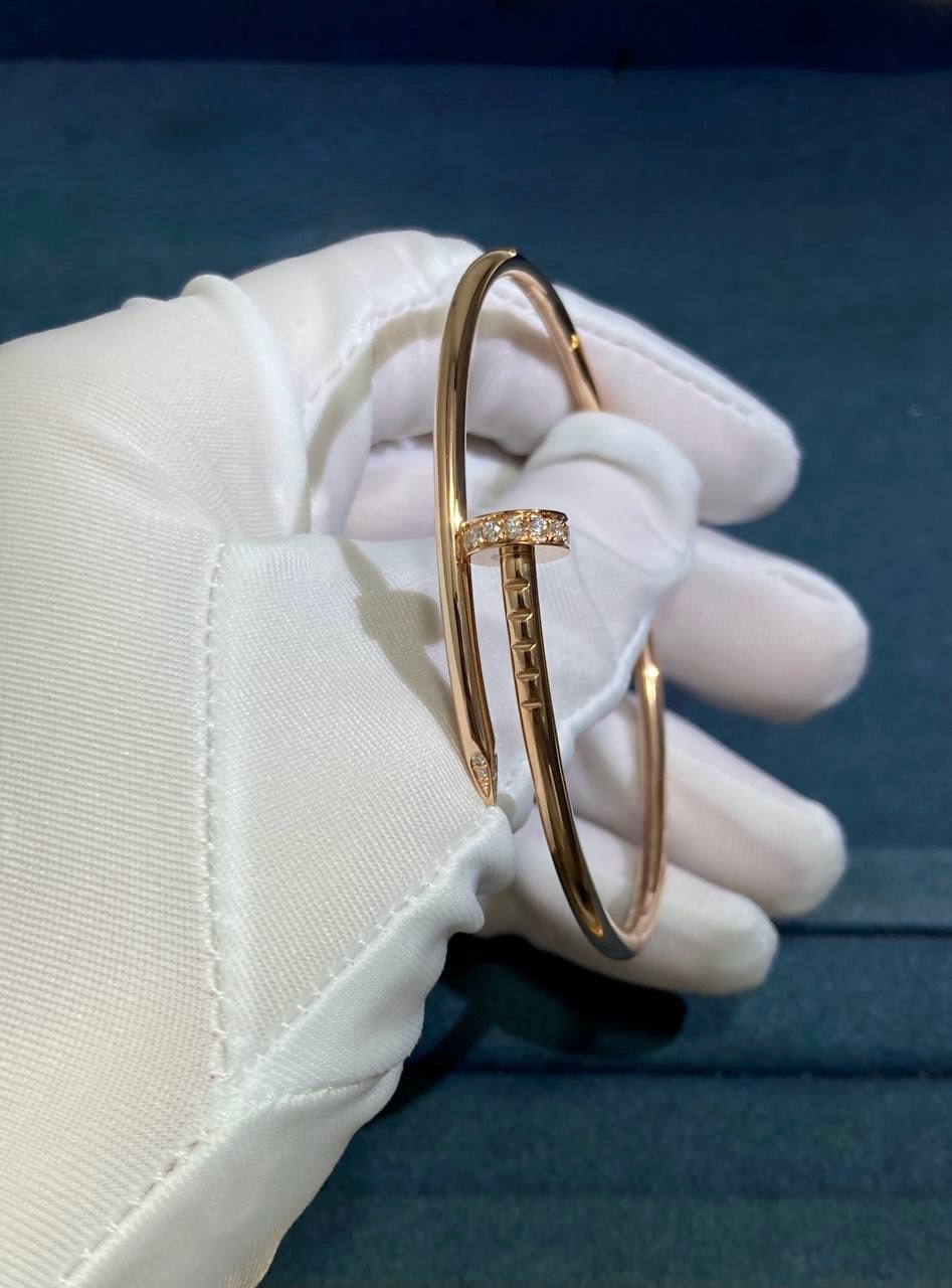 Bracelet inspiré des clous — Petit modèle en or blanc, rose ou jaune 18 carats, élégamment serti de 20 diamants taille brillant totalisant environ 0,18 carat. Largeur du bracelet : 2,5 mm (pour la taille 17).