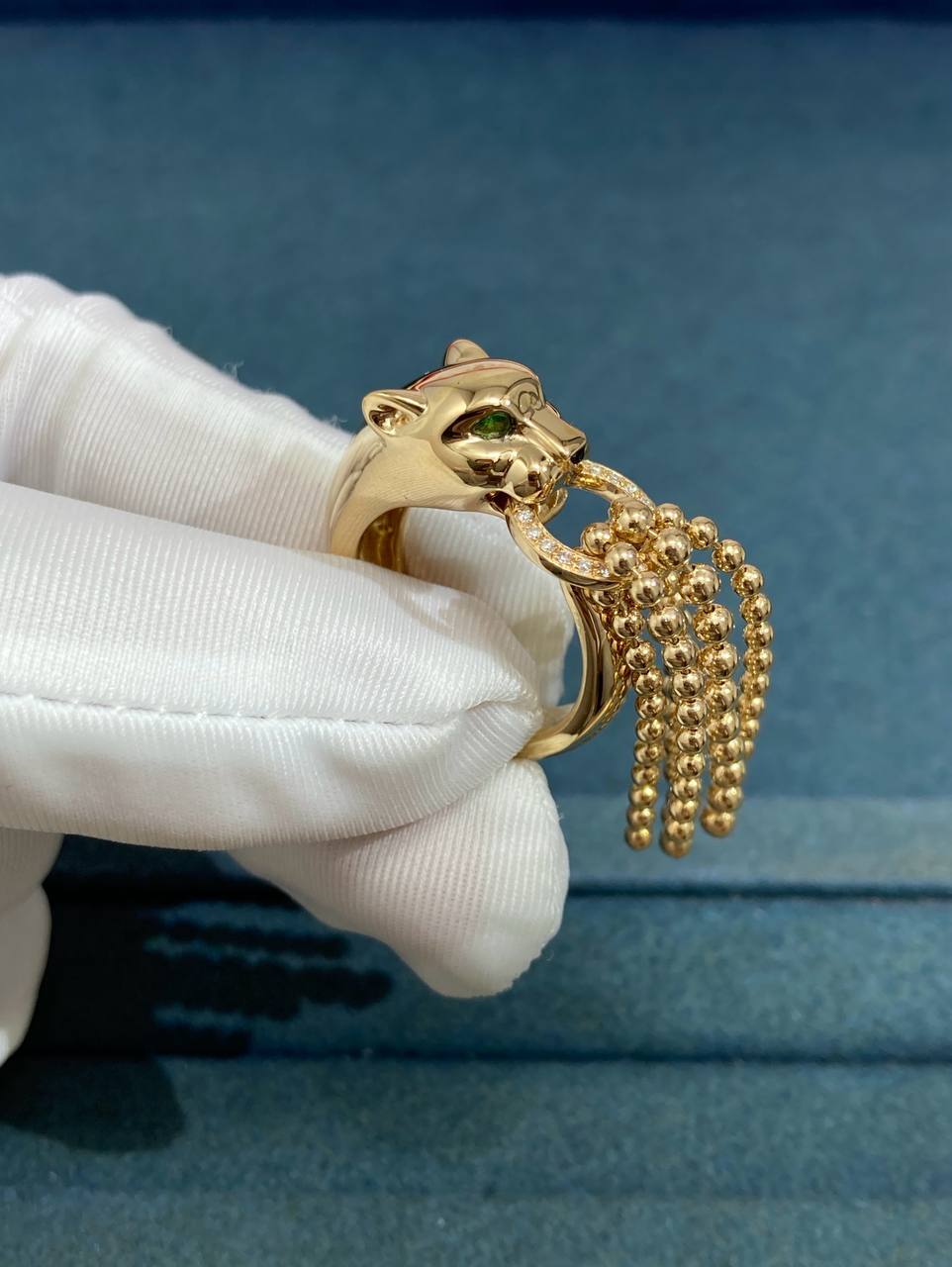 Panther Ring in 18k Yellow Gold with Diamonds, Tsavorite & Onyx