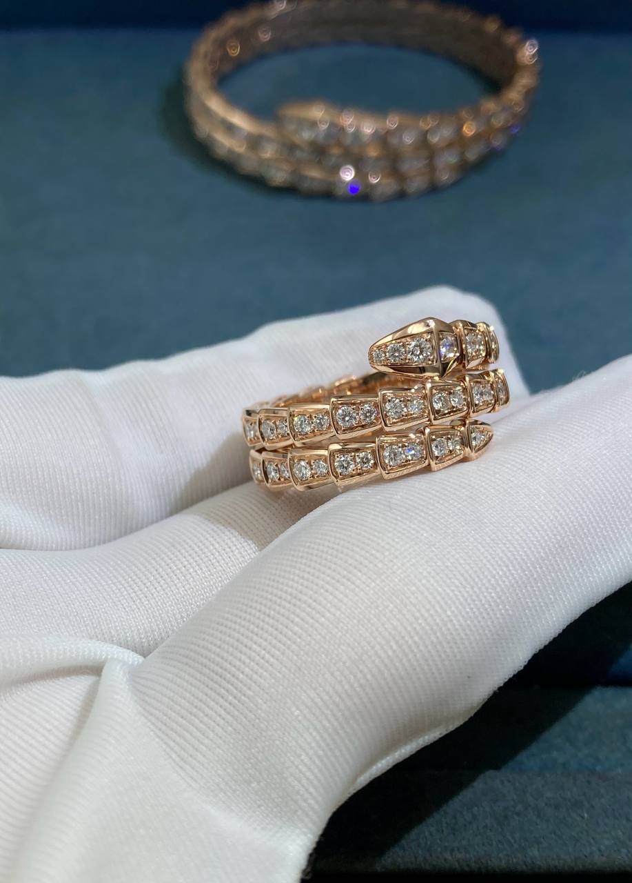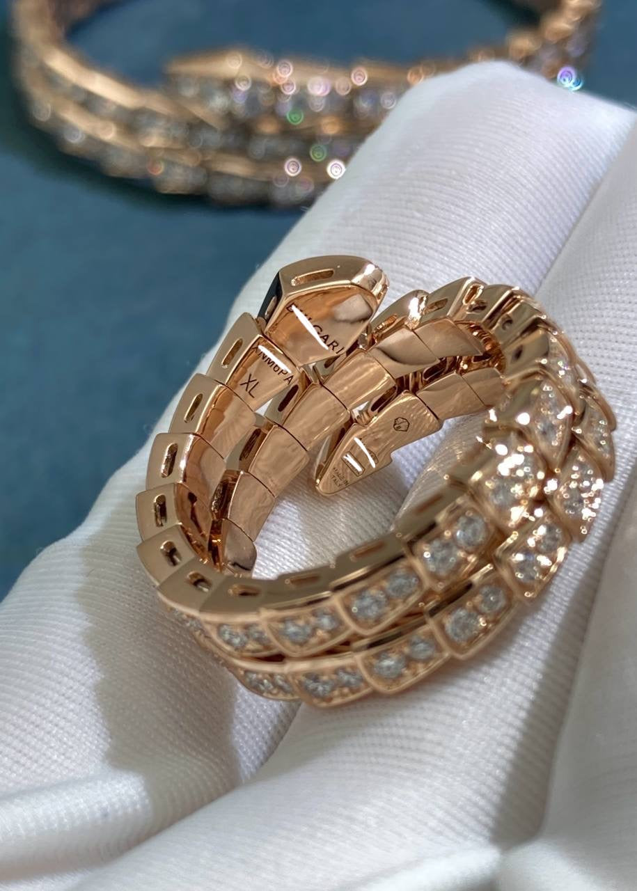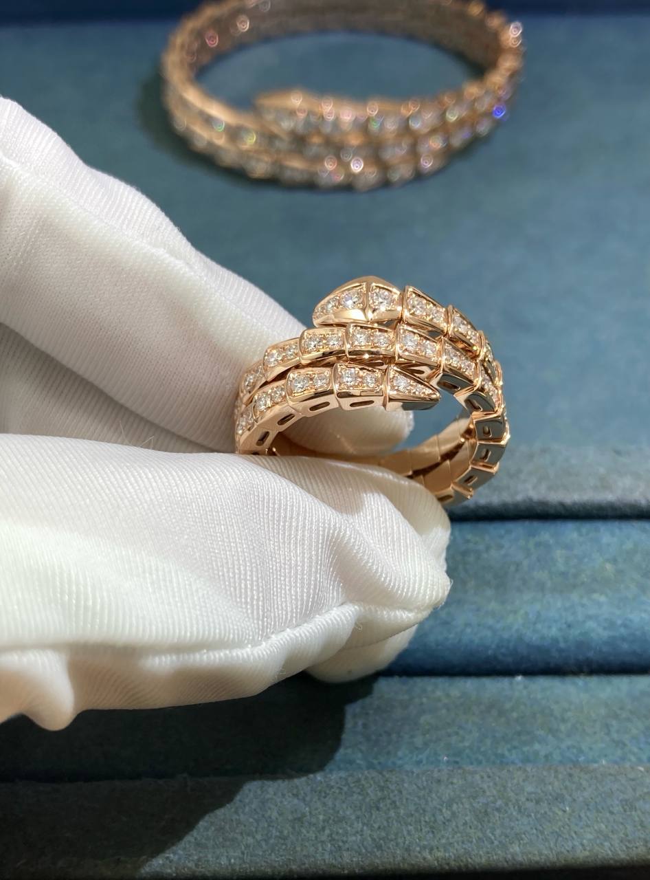 An ultra-modern reinterpretation of the iconic symbol of glamour and seduction, this Serpenti Viper ring captivates with its innovative, cutting-edge design. Crafted in 18k rose, yellow, or white gold, the ring abstracts the mythical snake through sleek, geometric forms, coiling gracefully around the finger. Its sculpted scales glisten with pavé-set diamonds, highlighting the distinctive sinuosity and refined elegance of the Serpenti collection.