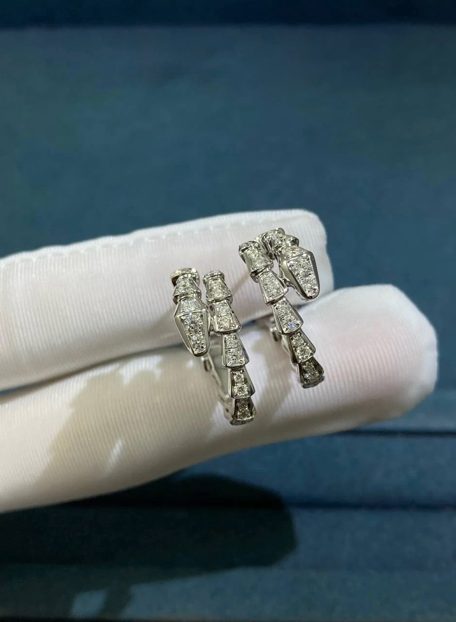 A contemporary reimagining of the serpent’s eternal allure, these earrings mesmerize with bold, cutting-edge design. Sleek, geometric forms echo the fluidity of serpent scales, creating a striking balance of elegance and modern sophistication. Each piece is pavé-set with 0.75 ct of diamonds, adding subtle brilliance to their sculptural beauty.