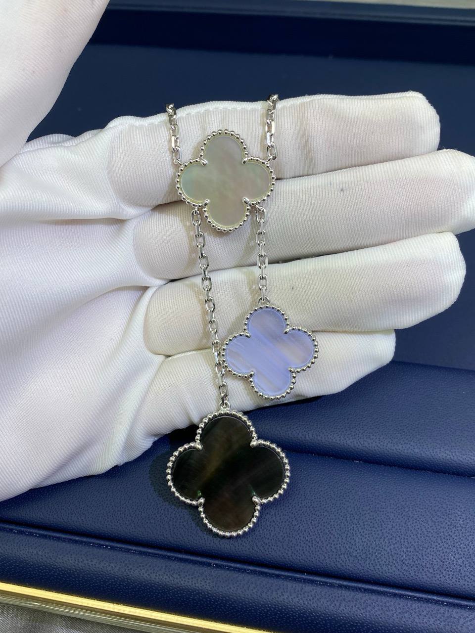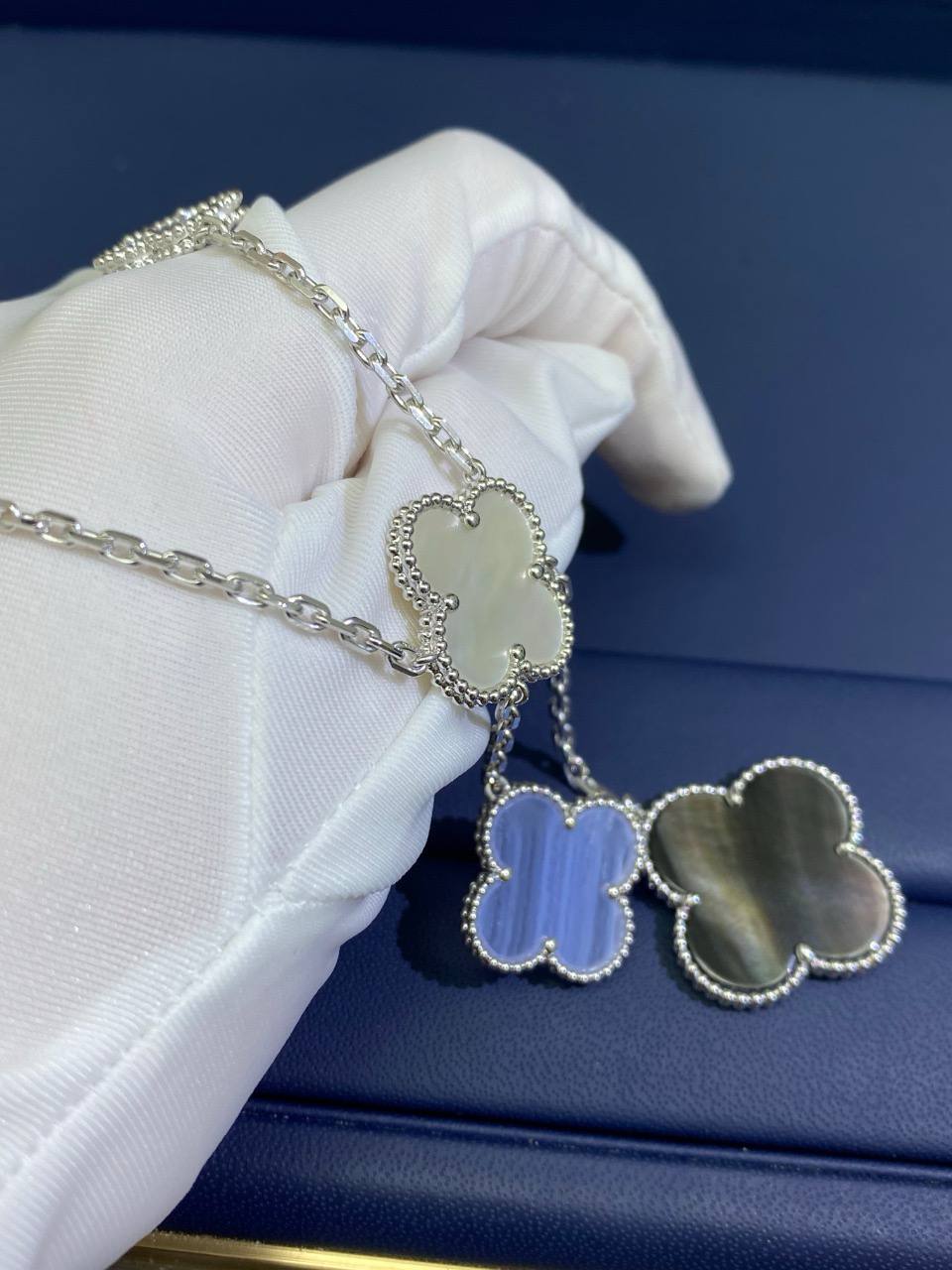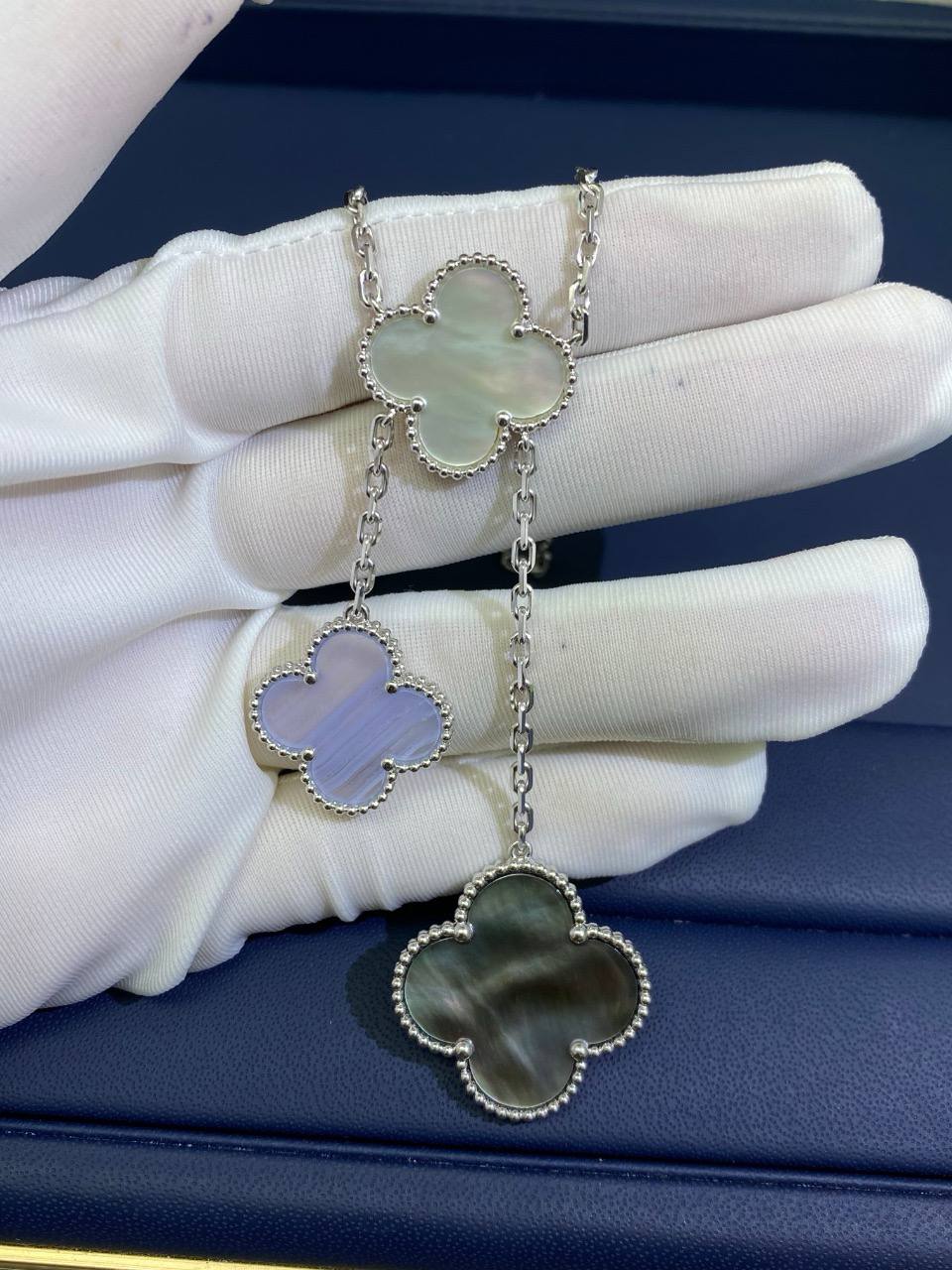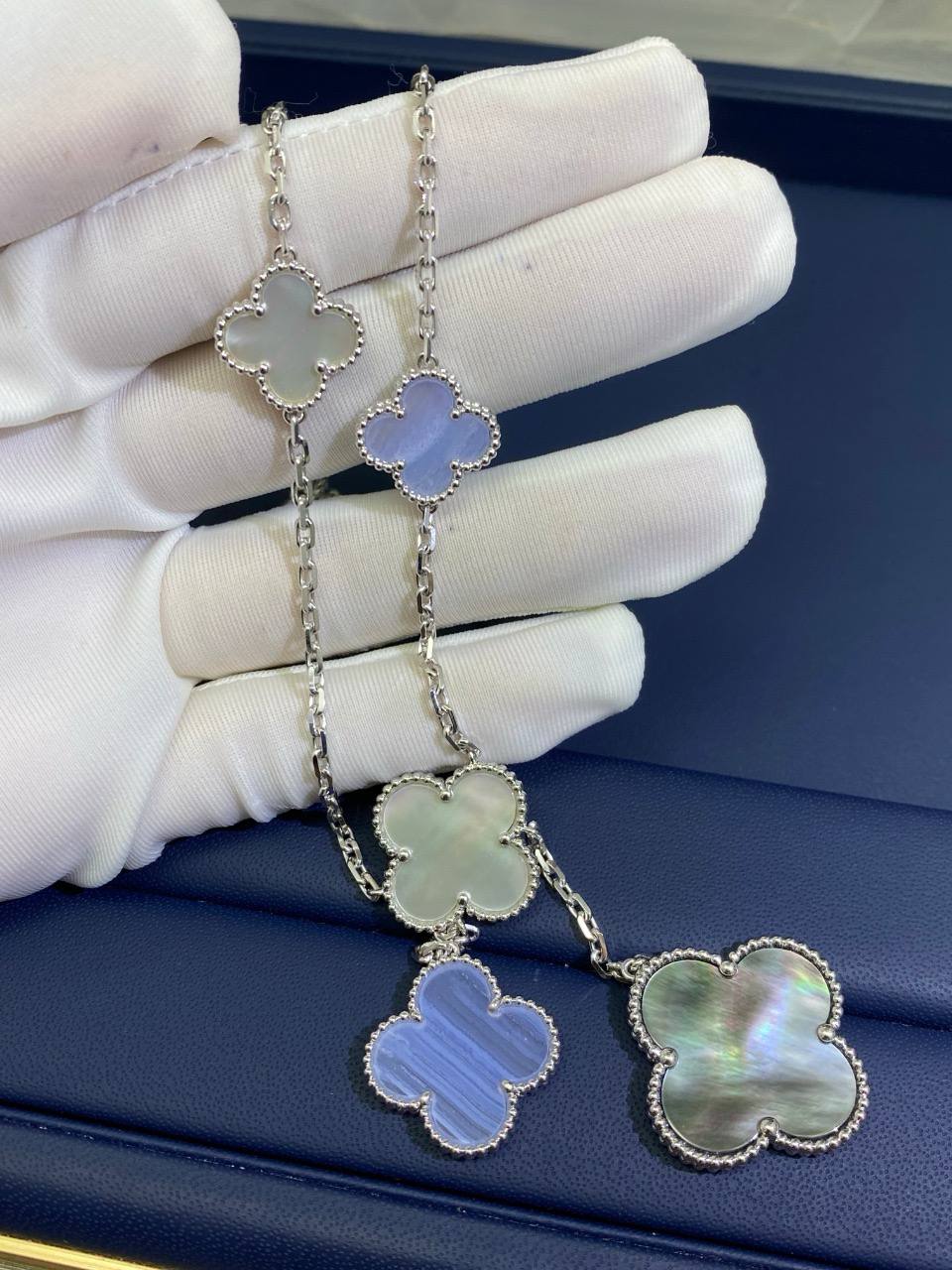 Gemstones: 2 white mother-of-pearl, 2 chalcedony, 1 grey mother-of-pearl
