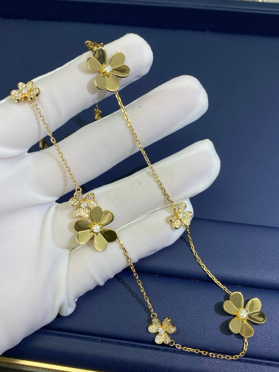 This exquisite necklace from the elegant Floral Collection showcases nine flower motifs in varying sizes, meticulously crafted in 18K yellow gold. The design is enhanced by 129 brilliant-cut natural diamonds, totaling 1.4 carats, creating a radiant and timeless piece of wearable art.