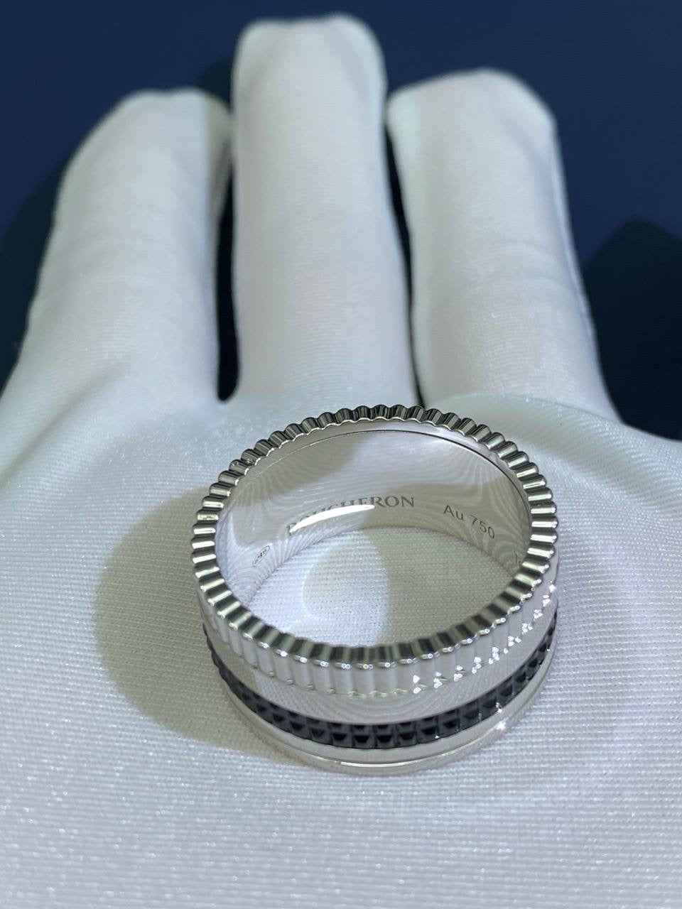 This quintessentially Parisian ring celebrates texture and evokes the architectural elegance of the City of Lights. Finely accented with black PVD, it exudes a distinctive and modern appeal. Discreet yet striking, this intimate ring offers perfect harmony and balance—equally sophisticated with formal attire or effortlessly chic with casual wear.
