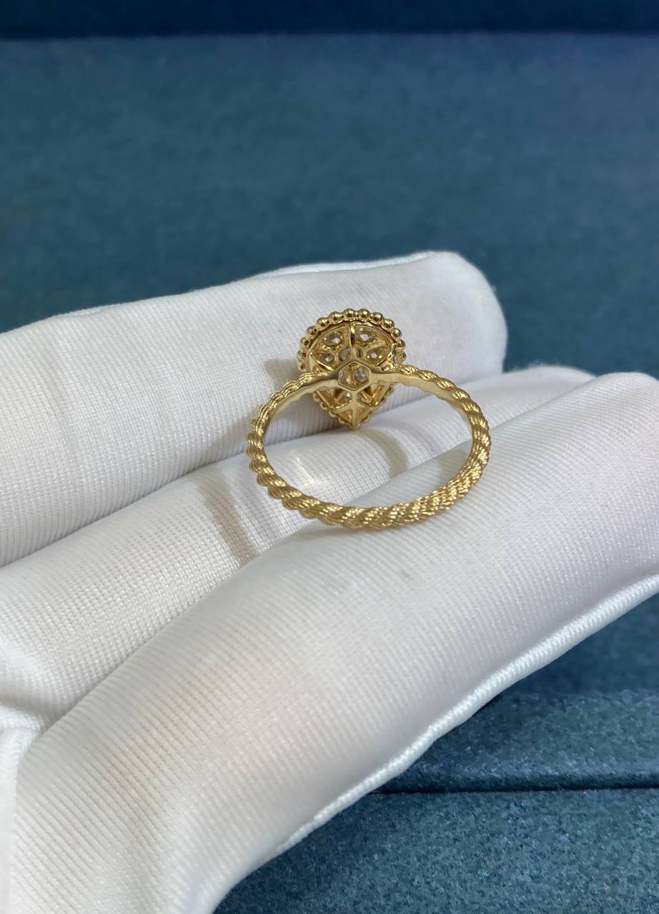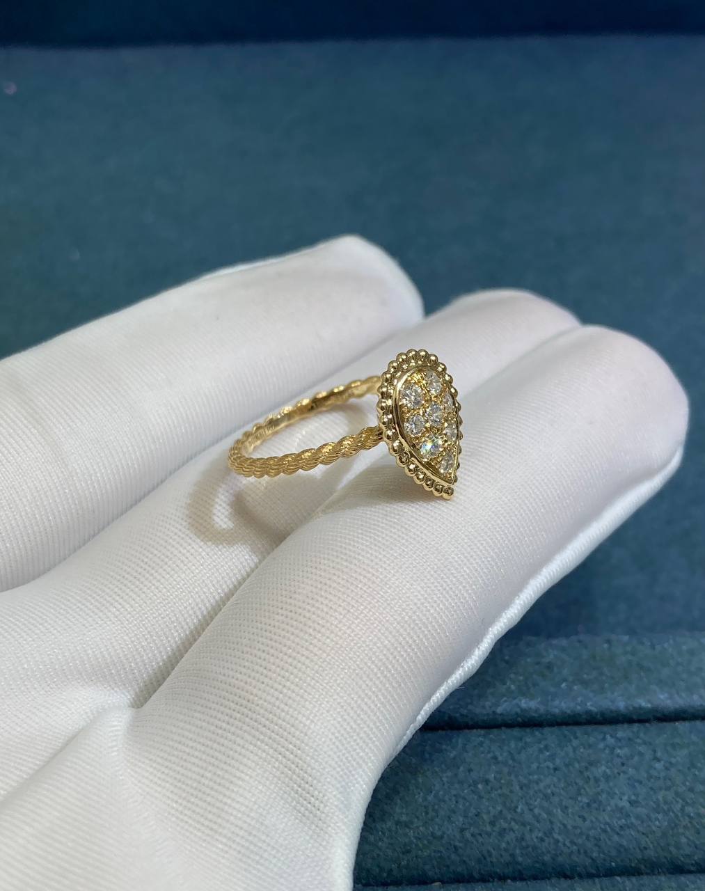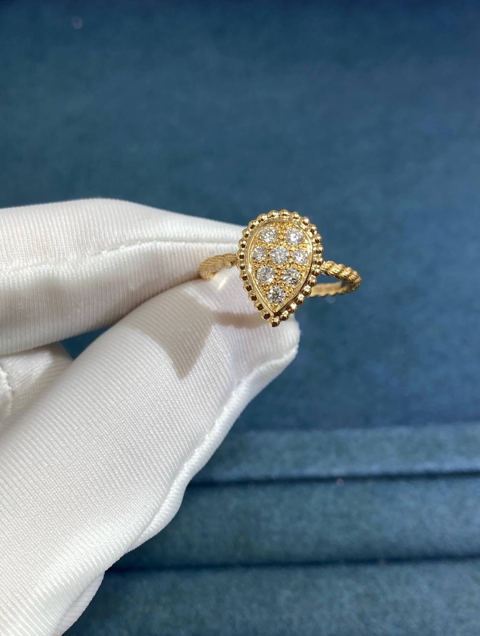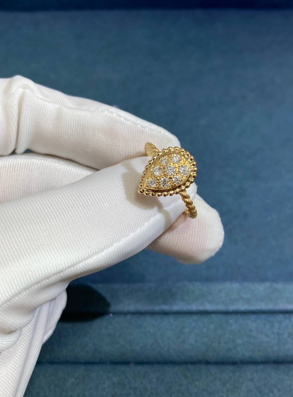 Like a dream you never want to end, this luxurious ring is sculpted in 18k gold, radiating understated elegance. Its design features coiled rope accents—a signature motif of the Bohème collection—surrounding a pear-shaped center framed by delicate beads and pavé-set round brilliant-cut diamonds. With 8 diamonds totaling 0.32 ct, this creation is a celebration of artistry and refined craftsmanship, destined to captivate those with a true appreciation for beauty.