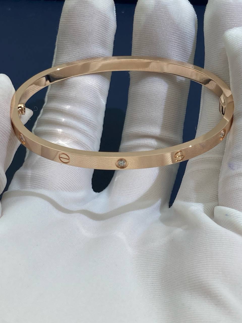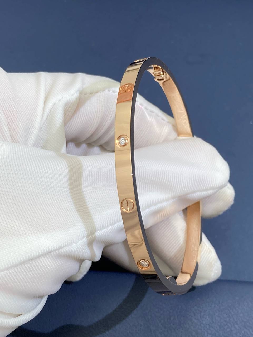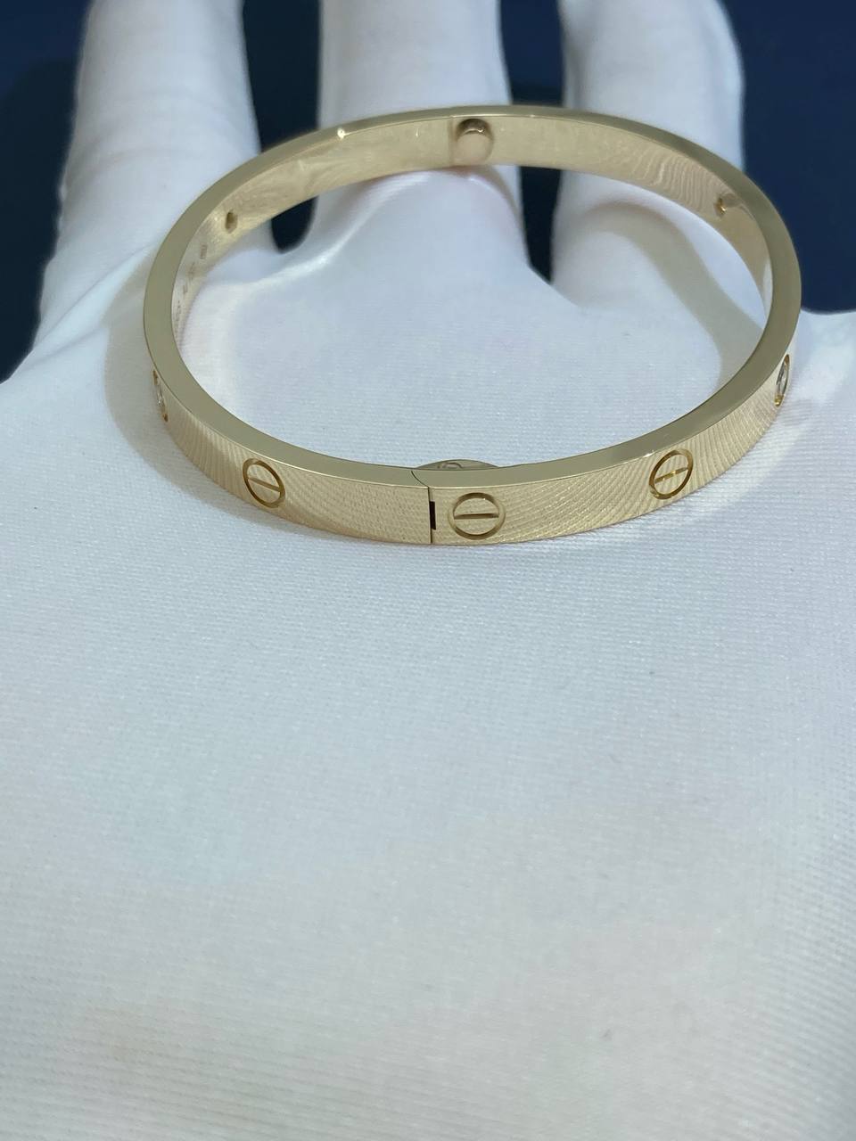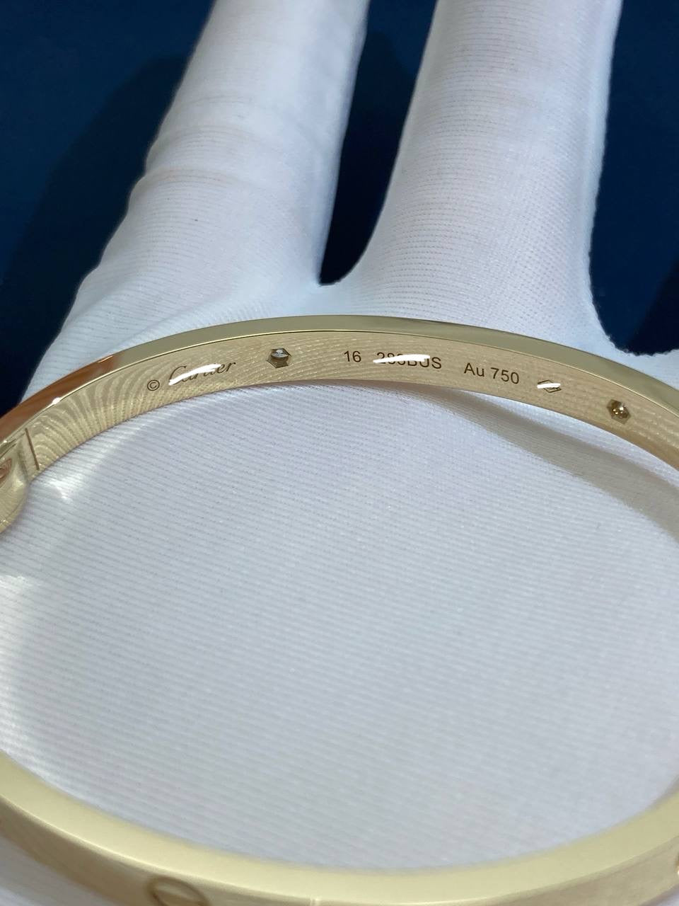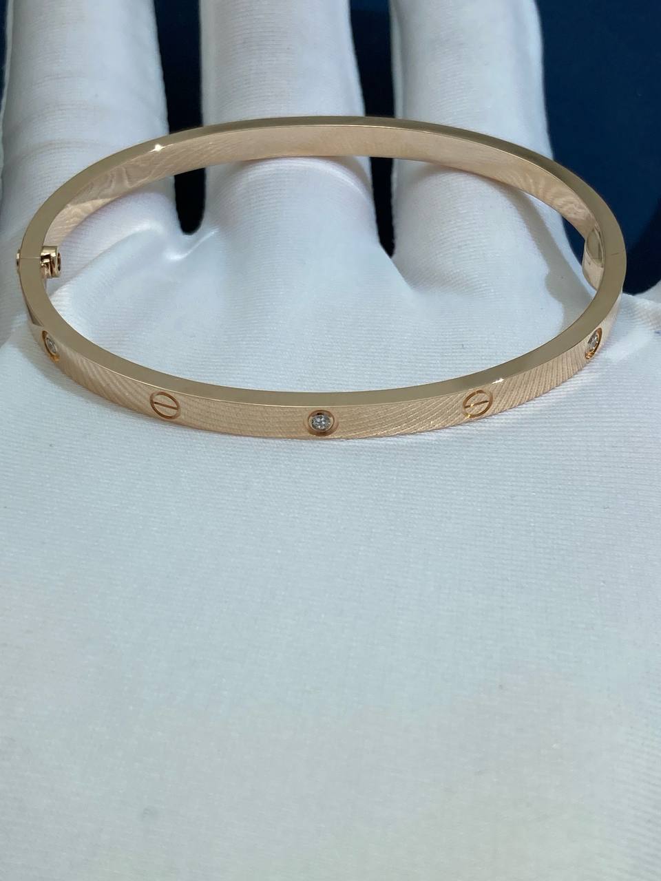This Love Bracelet, small model, is crafted in 18k yellow gold and set with six brilliant-cut diamonds totaling 0.15 carats. A timeless symbol of devotion, its signature screw motif and elegant design make it both iconic and intimate. Sleek, refined, and effortlessly luxurious, it’s perfect for daily wear or stacking with other fine pieces.