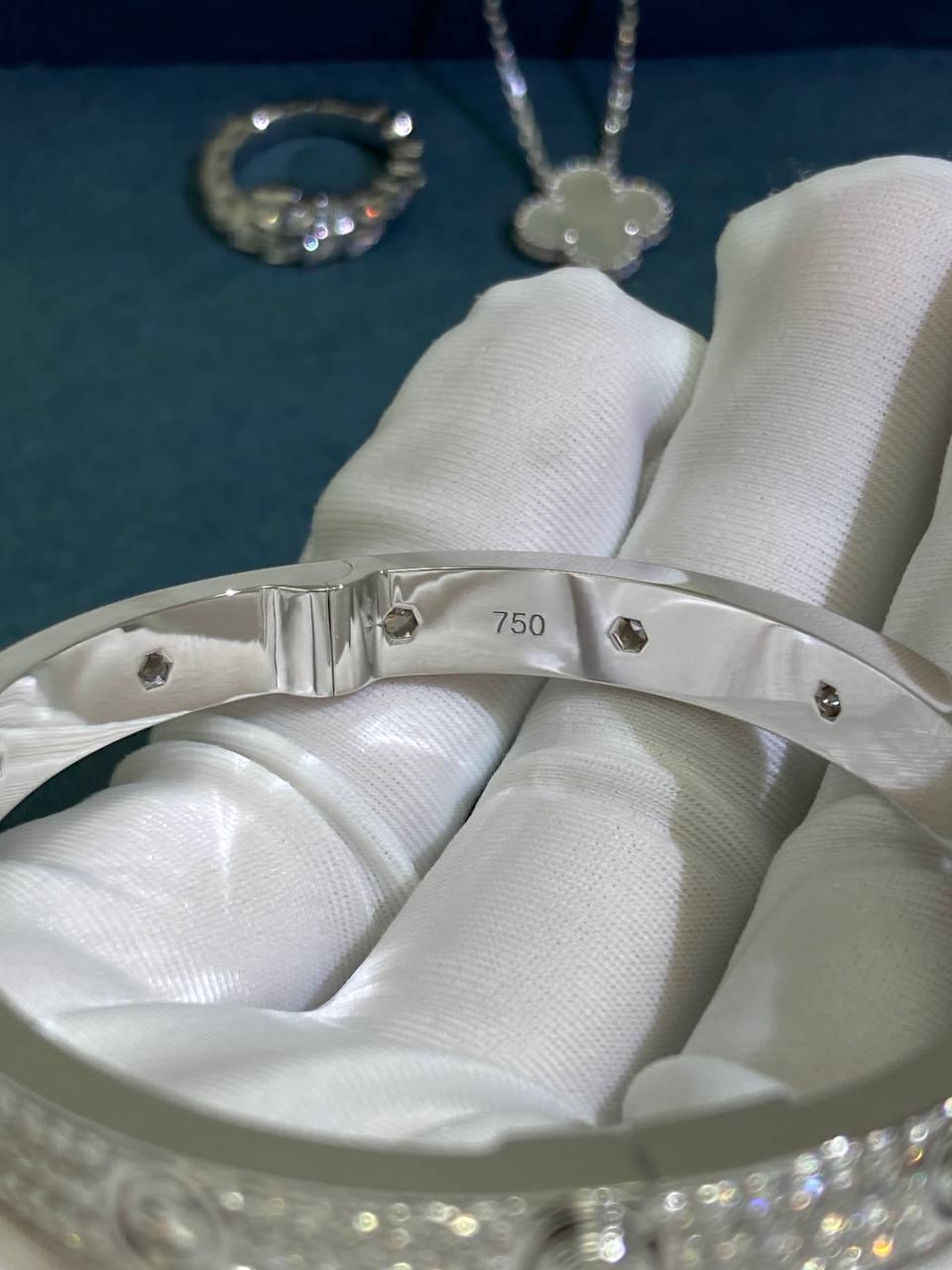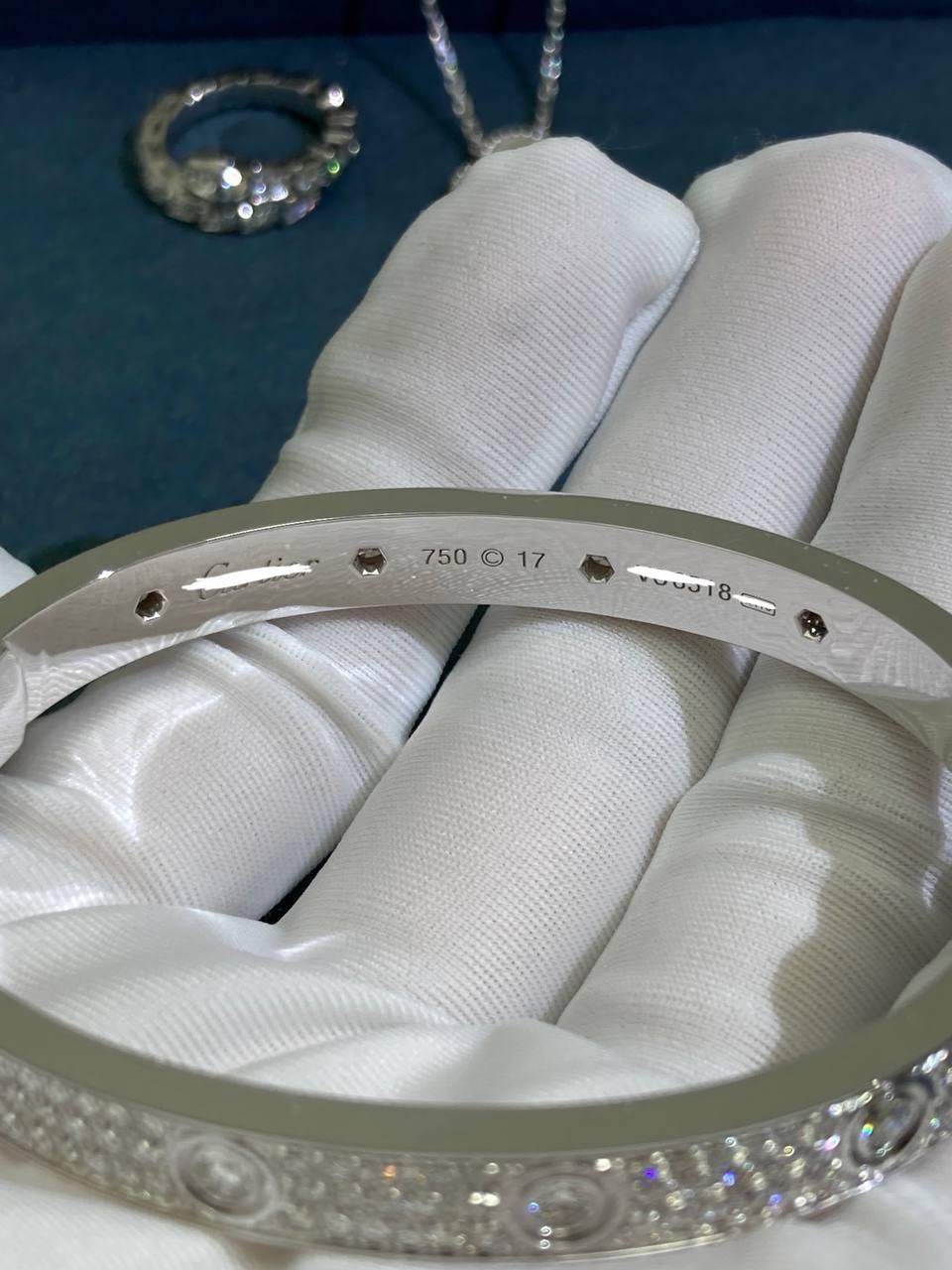 • Diamonds: 216 brilliant-cut diamonds, total weight 3.15ct (sizes 15–17)