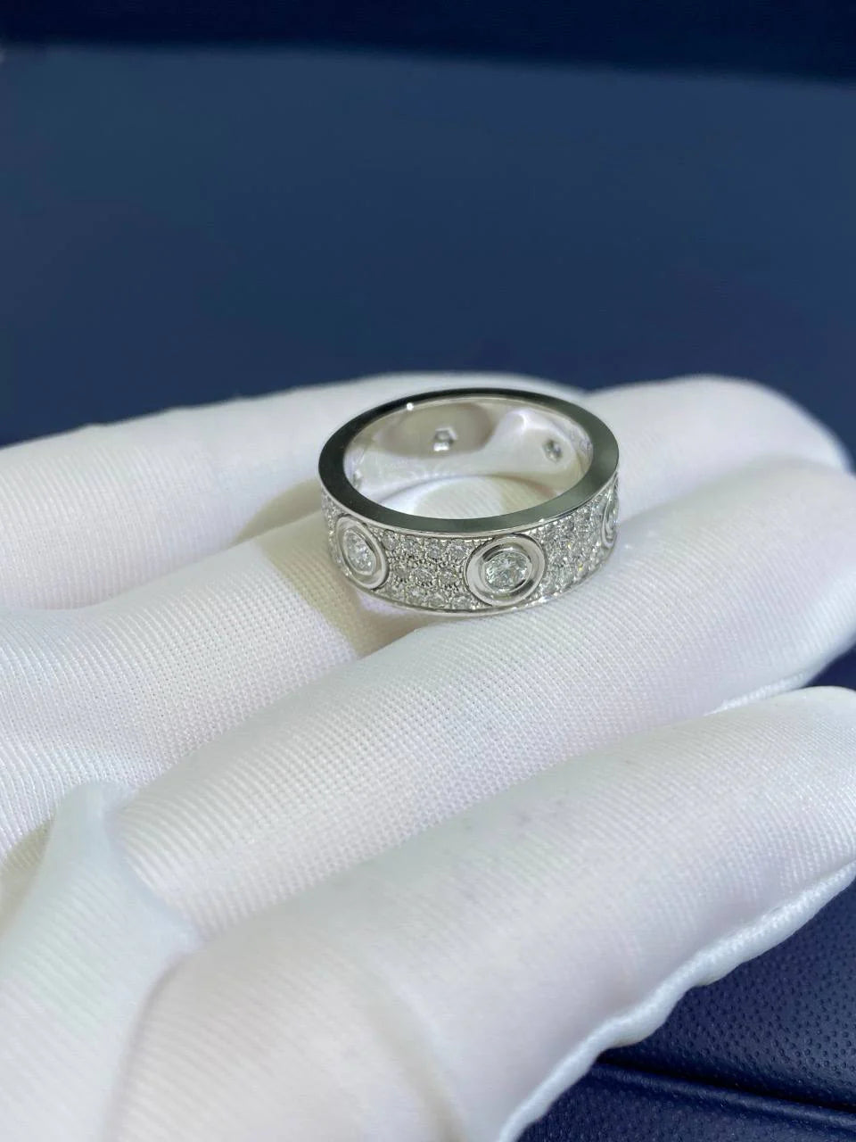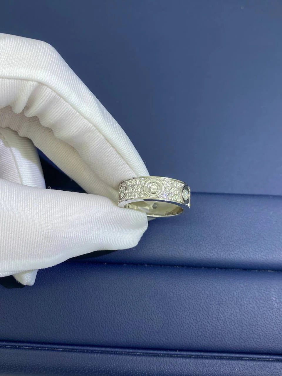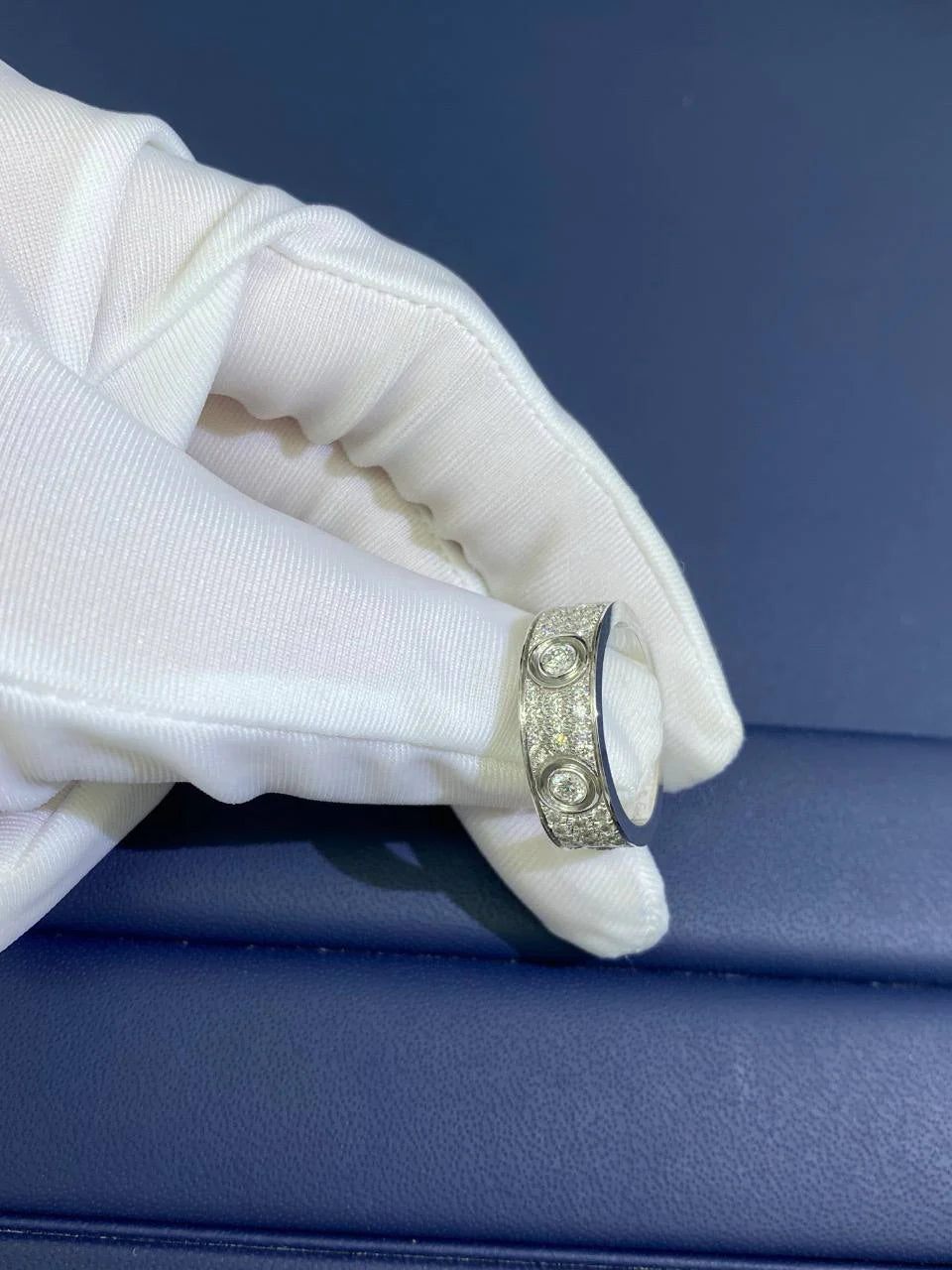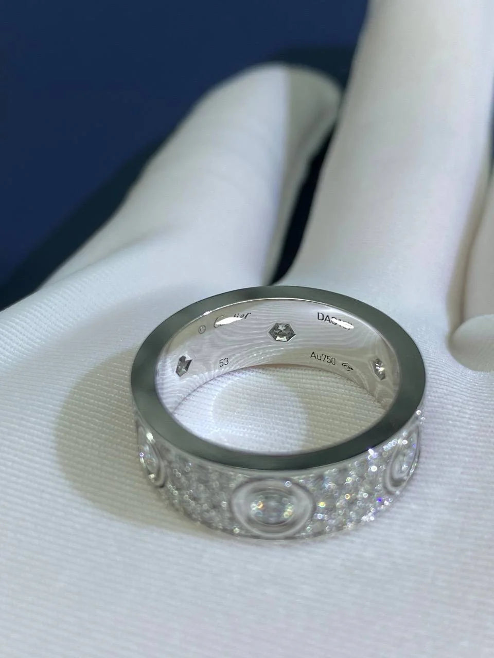 This iconic LOVE ring is exquisitely crafted in 18K white gold and fully encircled with 72 pavé-set brilliant diamonds totaling 1.26 ct, creating a continuous sparkle around the band. Its timeless design makes it a true classic, perfect for everyday elegance or special occasions.