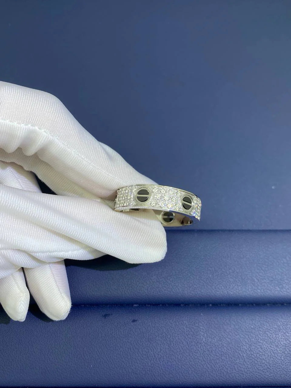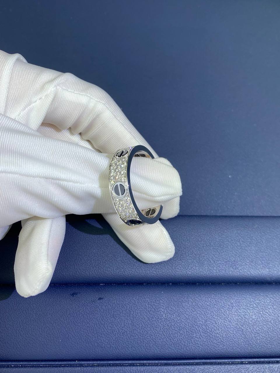 This striking ring from the Love Collection is crafted in 18K white gold and black ceramic, beautifully enhanced with 66 pavé-set brilliant-cut diamonds encircling the band. The contrast between the sleek black ceramic and sparkling white diamonds creates a bold and sophisticated statement.