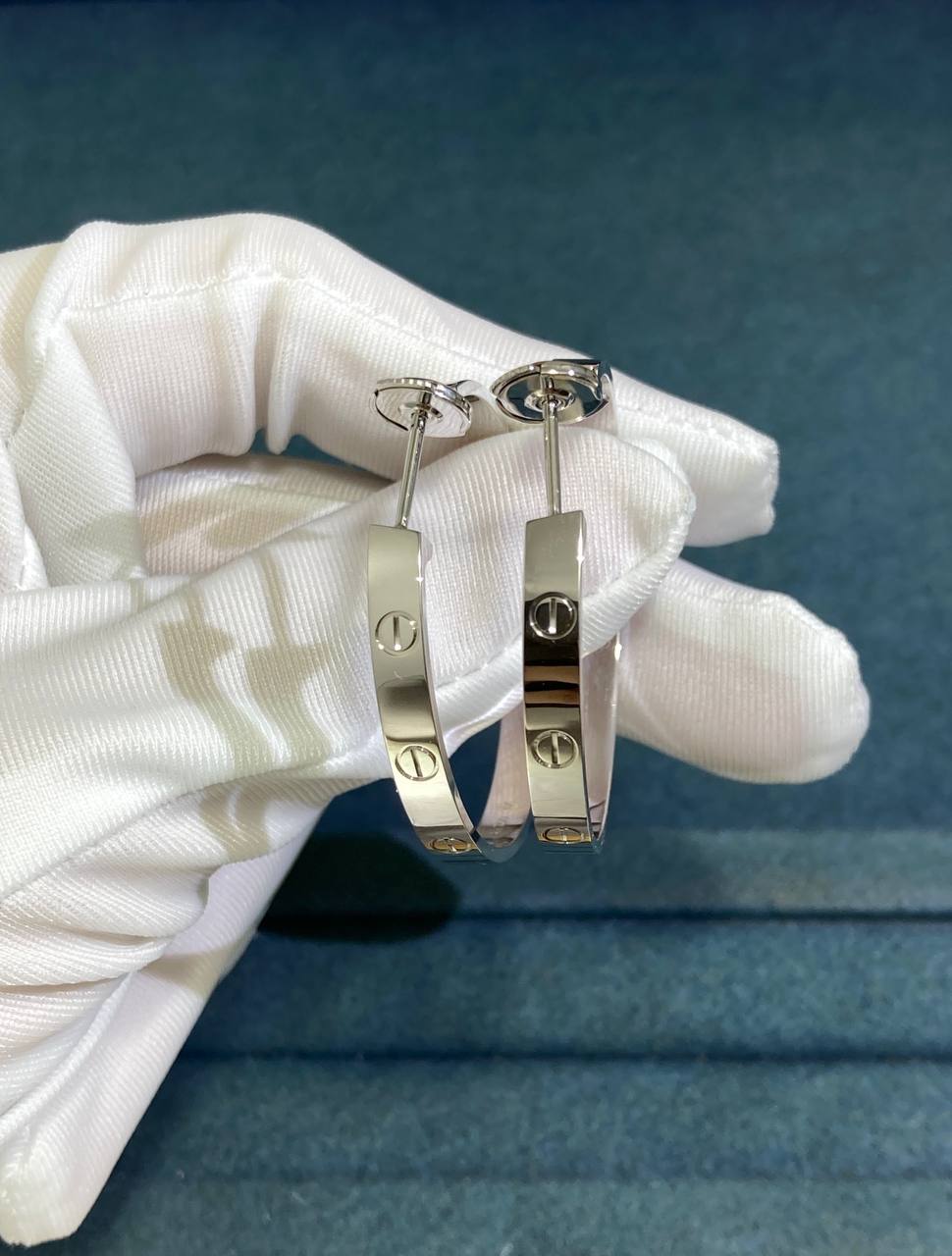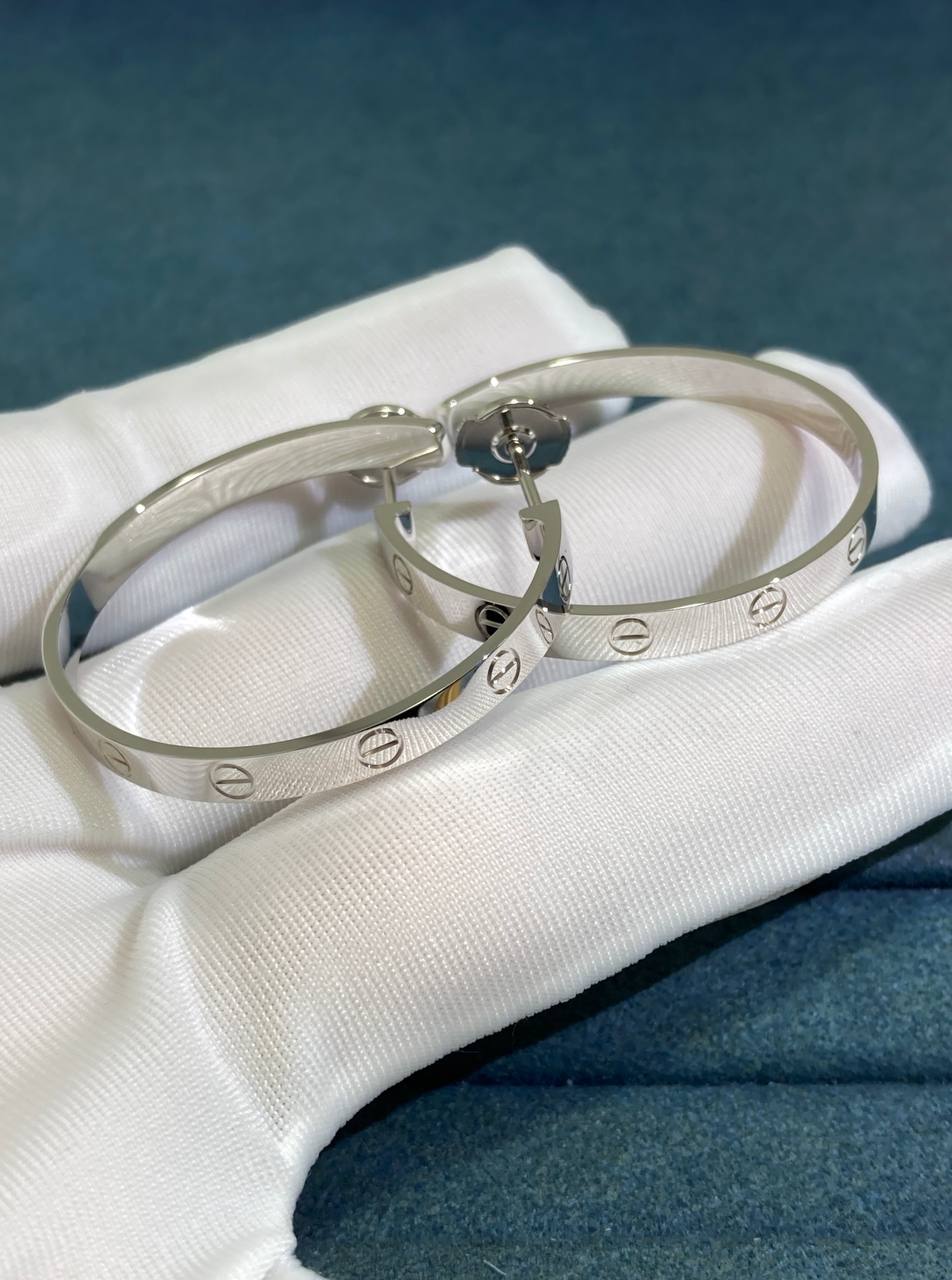 These elegant earrings are crafted in 18k white gold and belong to the iconic Love collection. Their sleek, timeless design makes them a versatile addition to any jewelry wardrobe.