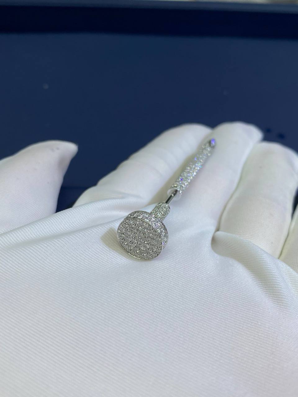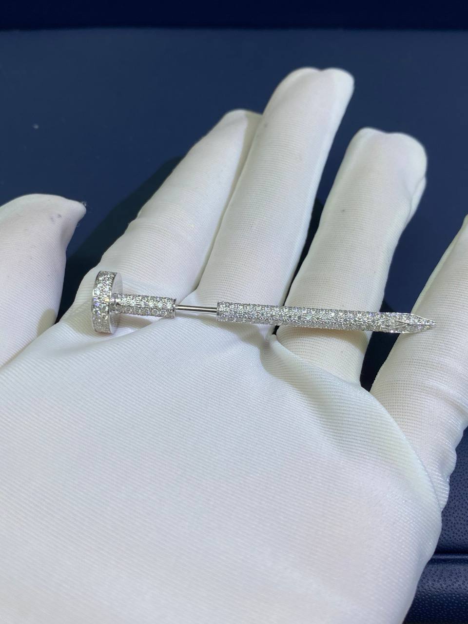This striking Nail-Inspired tie pin is expertly crafted in 18K white gold with a polished rhodium finish and set with 297 brilliant-cut natural diamonds, totaling 2.11 carats. A bold yet refined accessory, it combines modern design with exceptional craftsmanship.