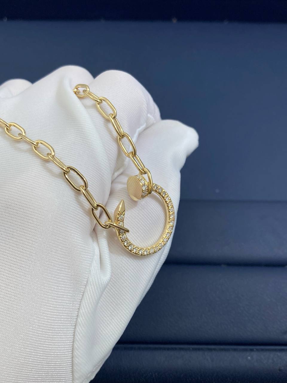 This 18k yellow gold nail chain necklace reimagines an everyday object as a bold statement of modern elegance. The coiled nail pendant is fully pavé-set with 37 round brilliant-cut diamonds totaling 0.40 carat, radiating brilliance with every movement.