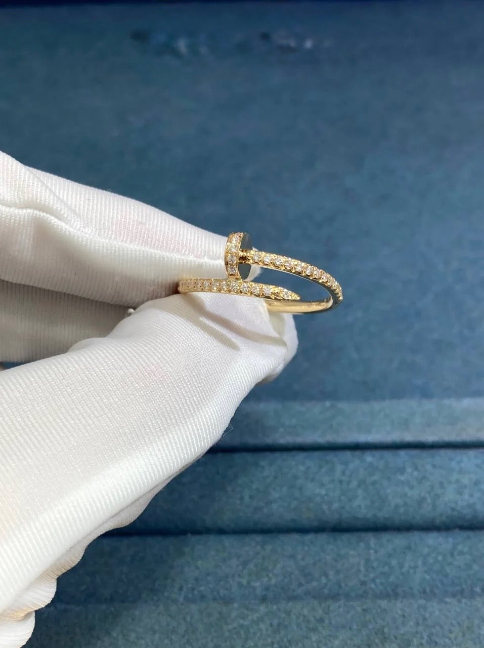 Sculpted in 18K gold, this ring takes the form of a smooth coiled nail, enhanced with signature engravings and pavé-set diamonds for a striking finish. A timeless piece to treasure for years.