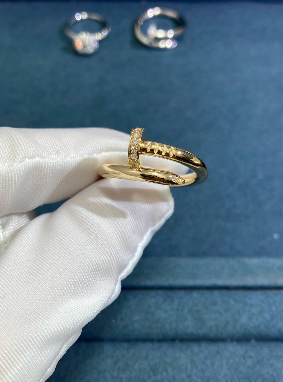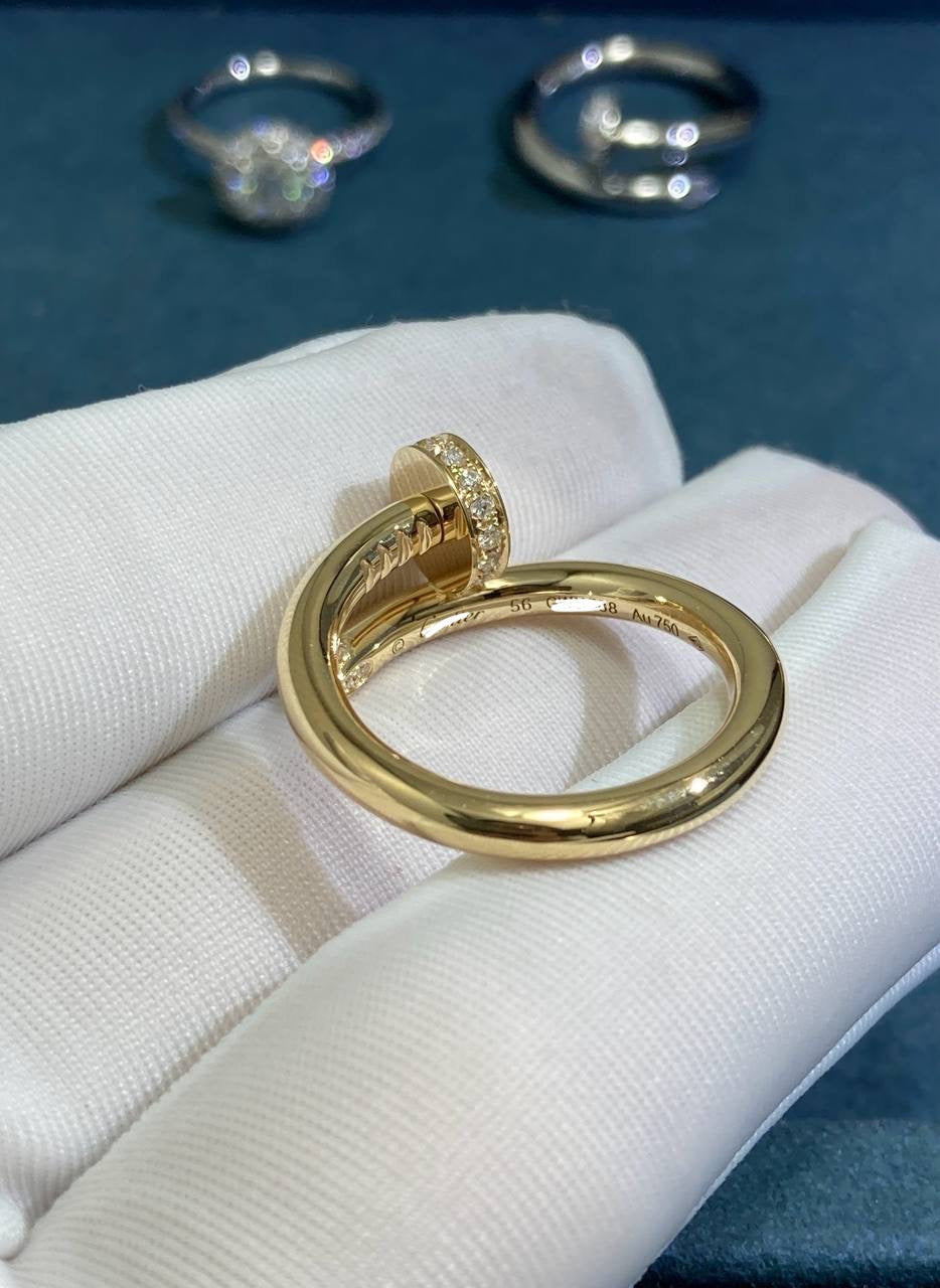 - Metal: 18k yellow, rose, or white gold (9.54 g, size 7)