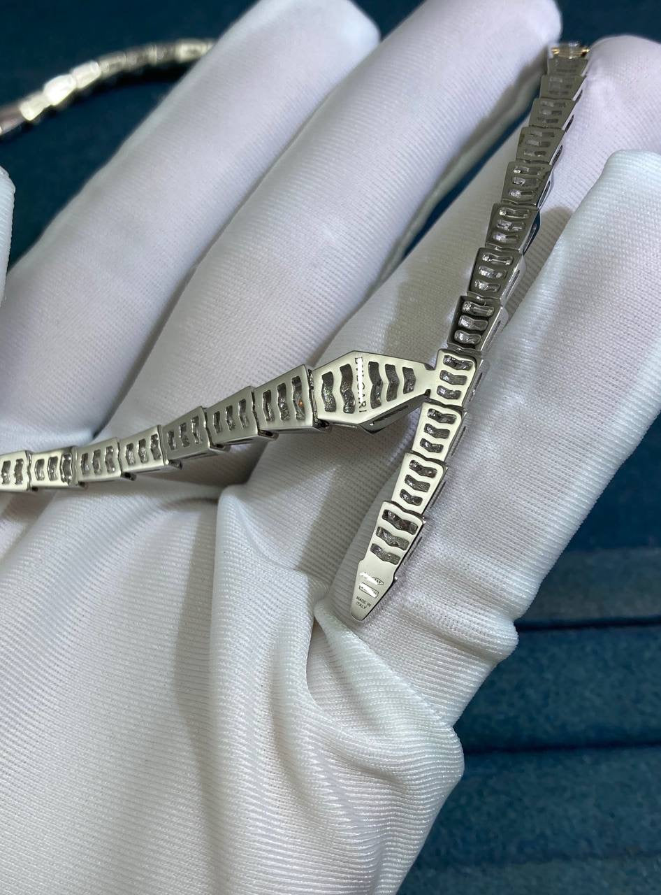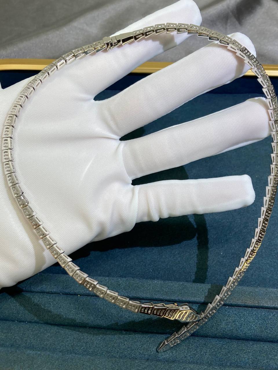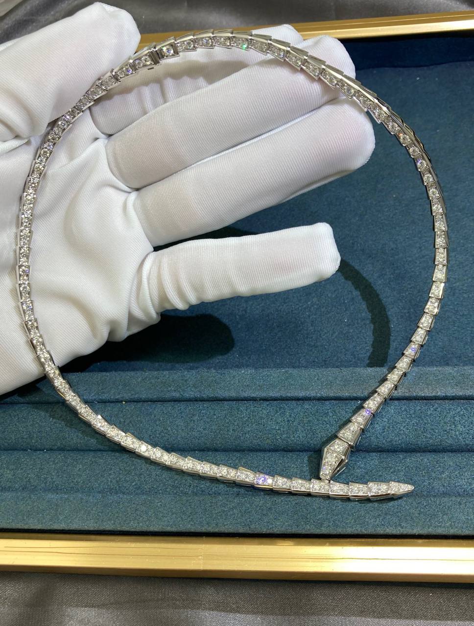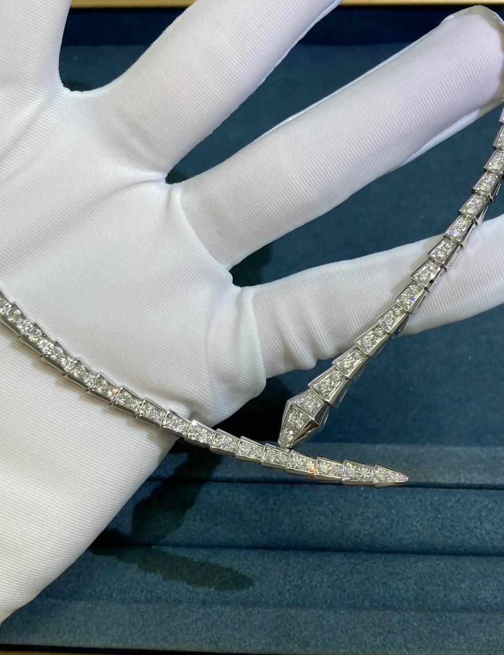 An ultra-modern expression of eternal metamorphosis and unstoppable transformation, this Serpent necklace in 18k white gold captivates with its sleek, sensual silhouette. Each individual scale is meticulously set with pavé diamonds, creating a mesmerizing play of light that embodies both geometric precision and fluid grace. The result is an irresistible masterpiece of refined sinuosity and radiant brilliance.