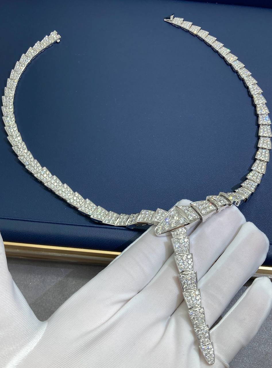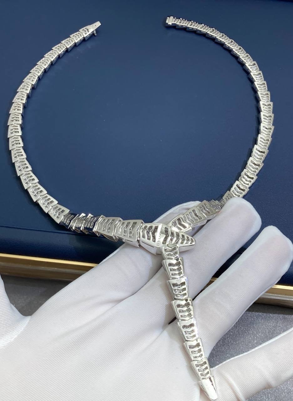 Serpent Necklace in 18k White Gold with Diamonds, Large model