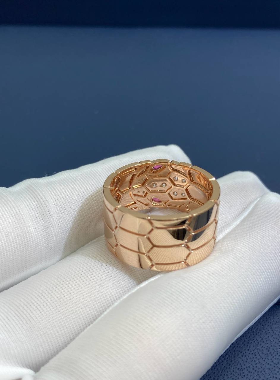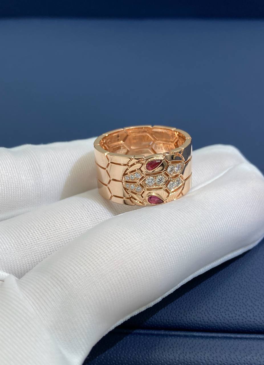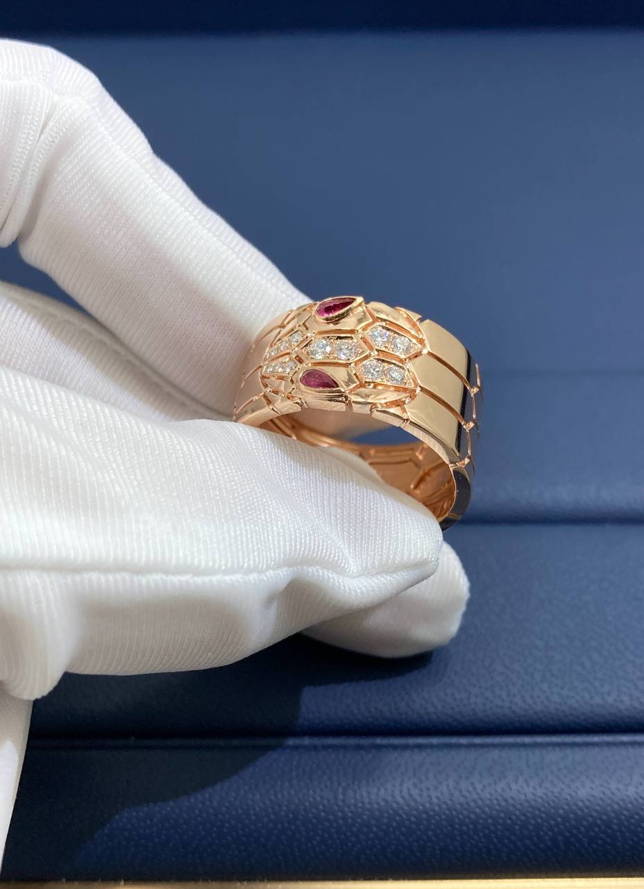Serpenti ring with diamonds and rubellites