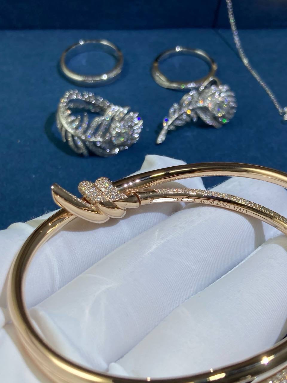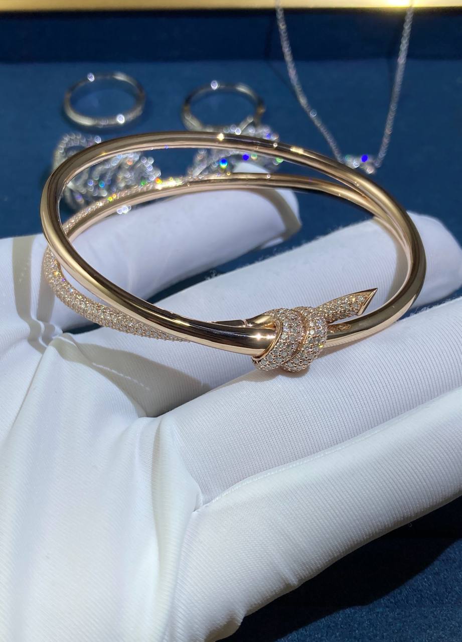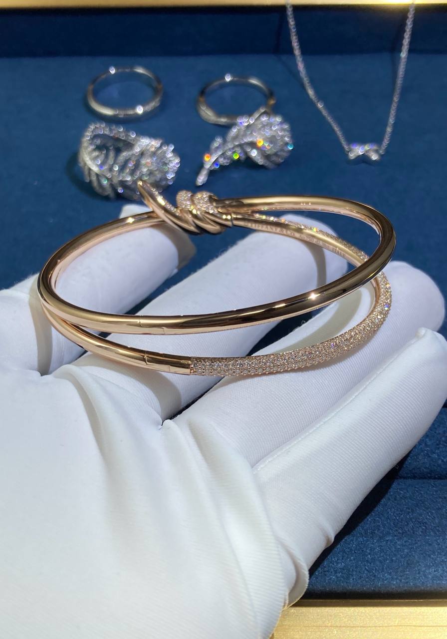 Exquisitely crafted in 18k rose gold, this polished bangle embodies elegance and meaning. Its sculptural knot motif—symbolizing strength and enduring connection—gracefully conceals the clasp within its design. Accented with round brilliant diamonds totaling 2.05 carats, the bracelet dazzles with refined sparkle. To open, simply press down the tail of the knot and rotate, revealing a mechanism as clever as it is seamless.