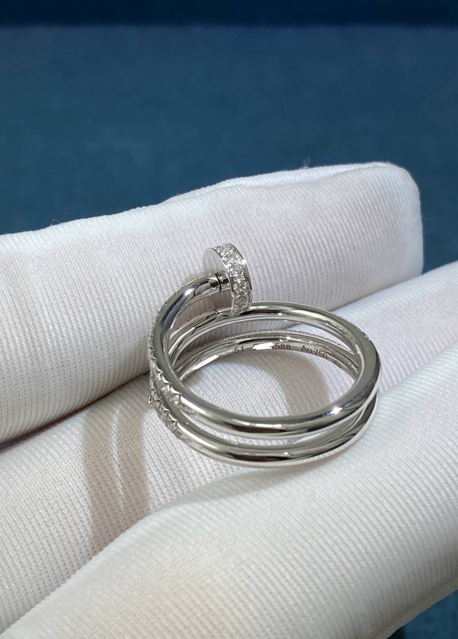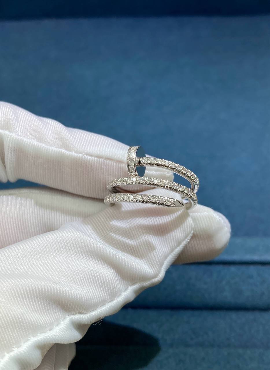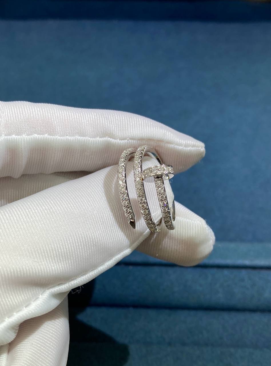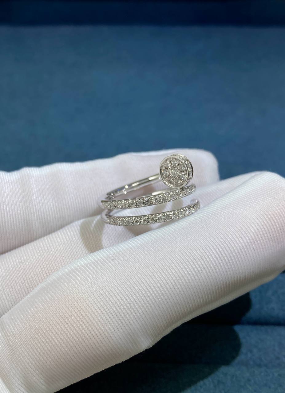 A bold yet elegant statement piece, this ring is meticulously crafted in 18k white gold and set with 77 brilliant pavé diamonds (totaling 0.59 ct). Designed around the iconic nail motif, it combines modern edge with timeless sophistication, slipping effortlessly onto the finger with a sleek, refined silhouette.