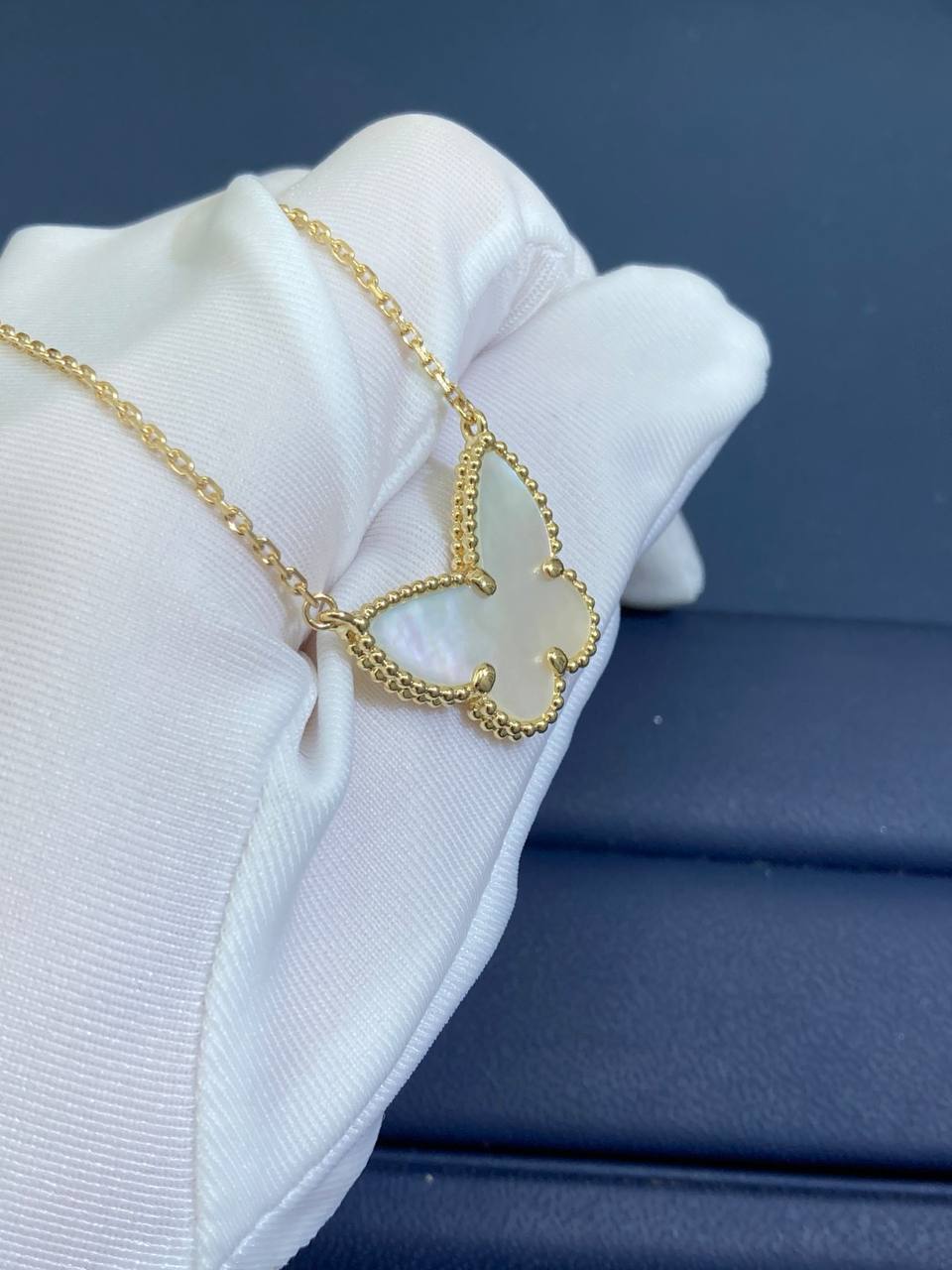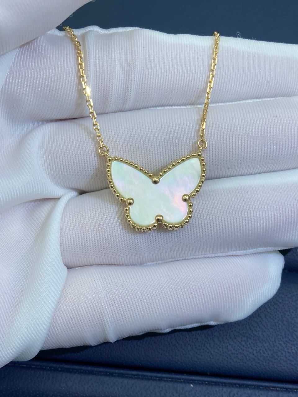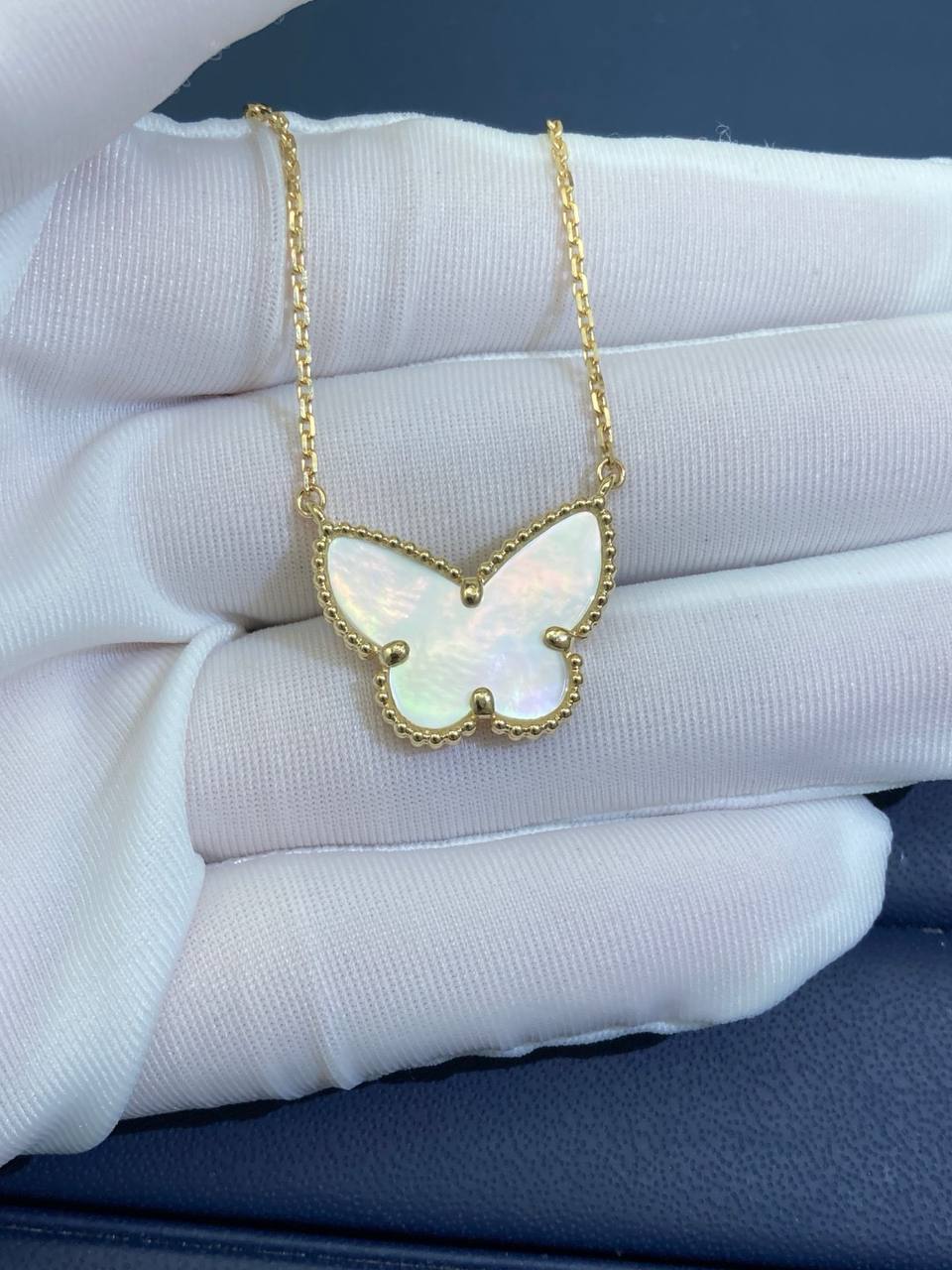 A timeless addition to any jewelry collection, this elegant pendant effortlessly elevates any outfit. Crafted in 18K yellow gold, it features a delicate mother-of-pearl butterfly that adds a subtle touch of color and sophistication. Its versatile design ensures you’ll reach for it time and again, making it a true wardrobe staple.