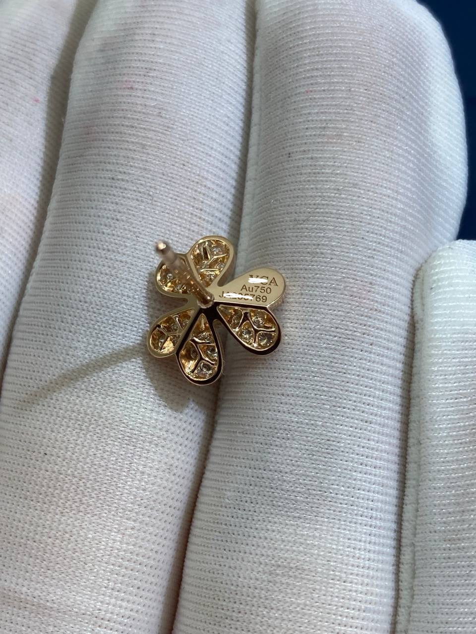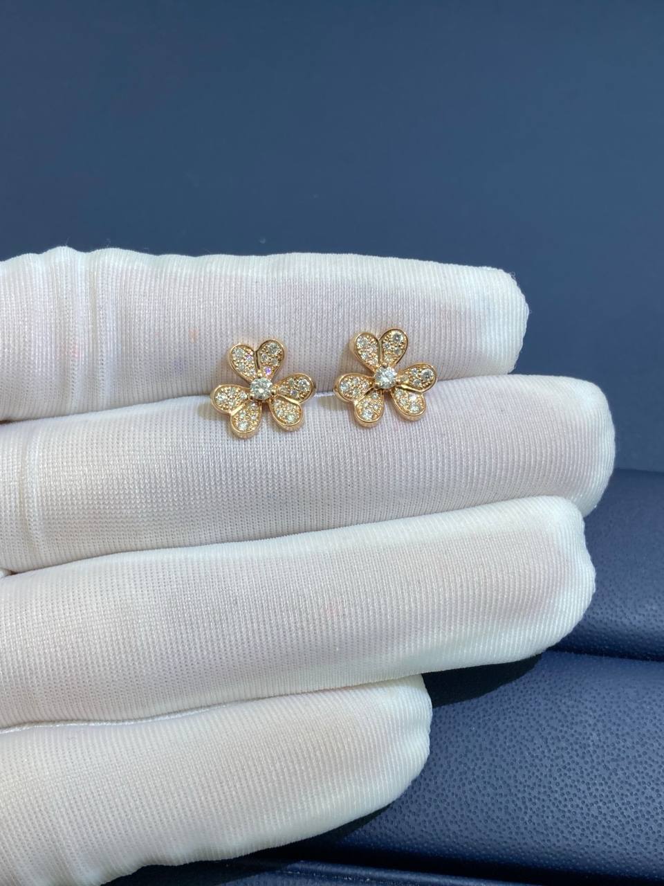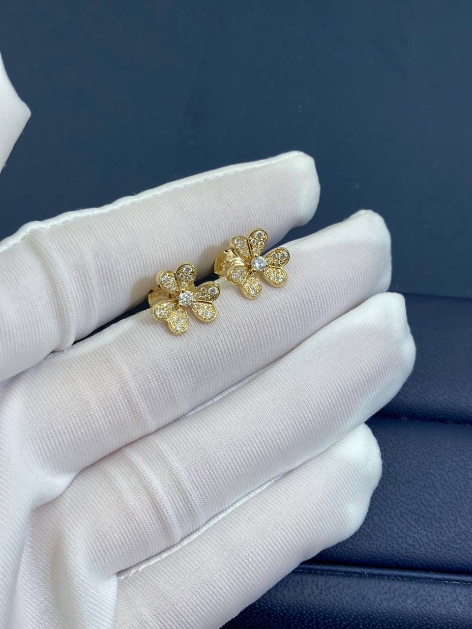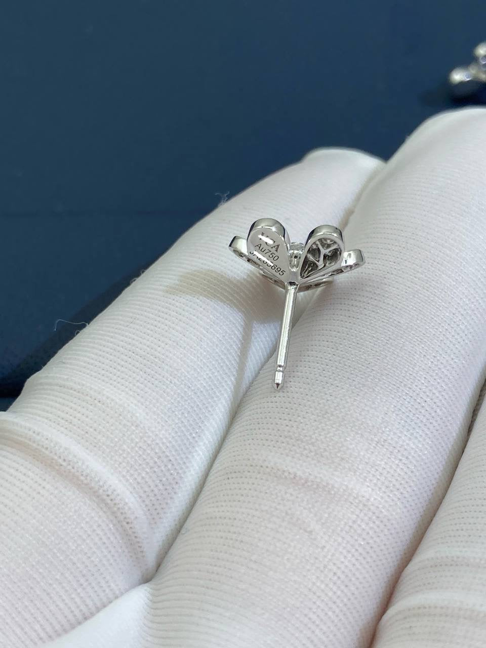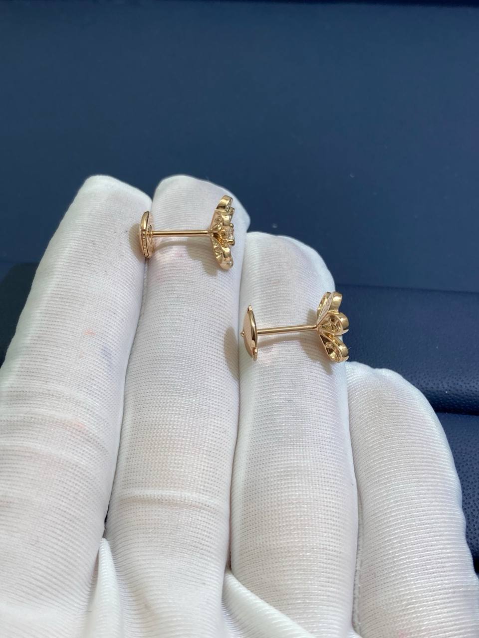 This exquisite line of jewelry celebrates masterful craftsmanship through timeless floral motifs adorned with pavé-set diamonds. These earrings feature three-petaled blossoms, each luxuriously illuminated by round brilliant-cut diamonds that radiate elegance with every movement. Demure yet distinctive, they are crafted in 18k gold and available in rose, white, or yellow gold for a versatile expression of refined beauty.