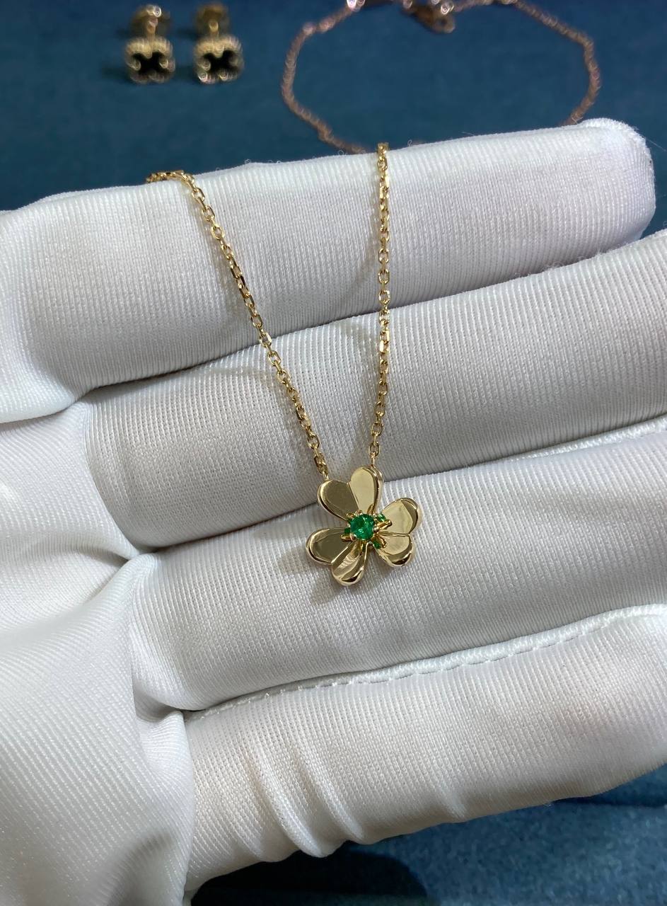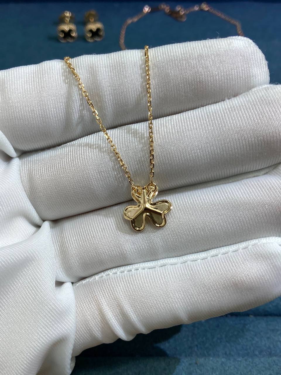 Exuding timeless elegance, this pendant is finely crafted in 18K yellow gold and shaped into a graceful three-petaled flower. Suspended from a slender chain, this delicate jewel is a refined expression of beauty, perfect for both everyday wear and special occasions.