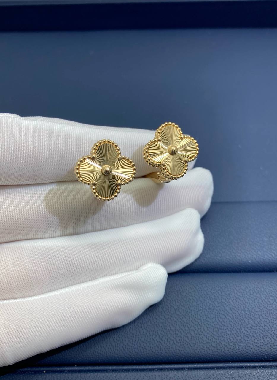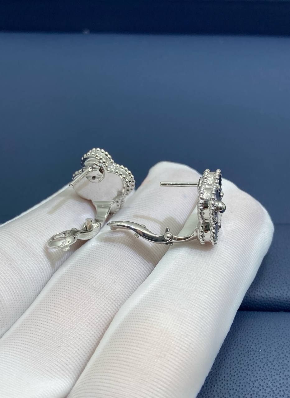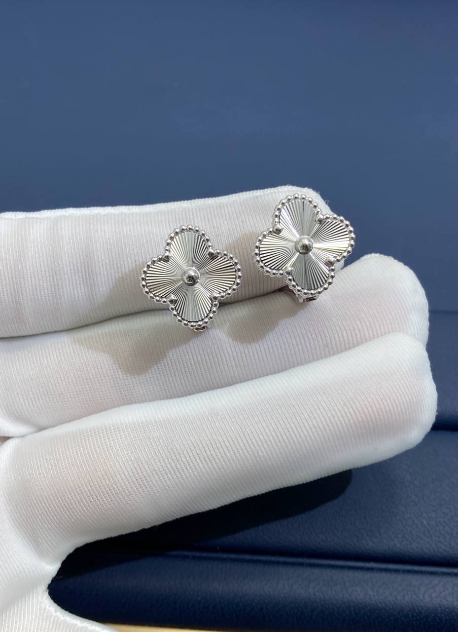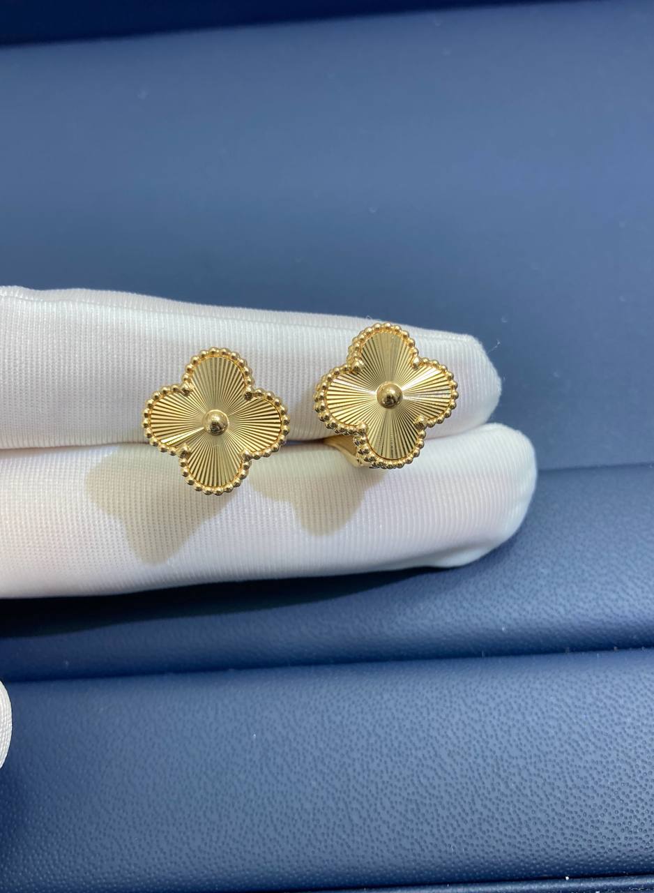 These stunning earrings exude timeless elegance and refined craftsmanship. Inspired by the iconic clover leaf, a symbol of luck, each motif is beautifully framed with a delicate border of golden beads, highlighting its graceful symmetry and sophistication. Available in 18k yellow or white gold, they make a versatile and luxurious addition to any jewelry collection.