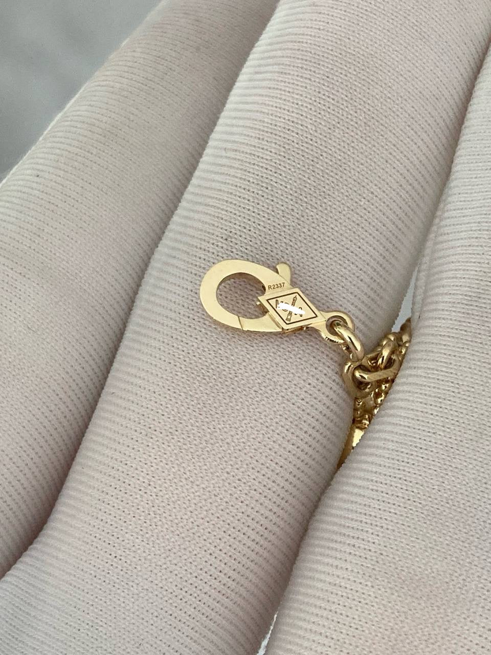 Where luxury meets the beauty of nature, this exquisite bracelet is crafted in 18K yellow gold and showcases five iconic clover-shaped motifs. Three of the motifs feature vibrant turquoise, while the remaining two are adorned with 24 brilliant-cut diamonds totaling 0.97 carat, exuding timeless elegance. The charms hang gracefully from a delicate gold chain, creating a piece that is as wearable as it is captivating. Perfect for adding a touch of everyday sophistication, this bracelet is a true work of art.